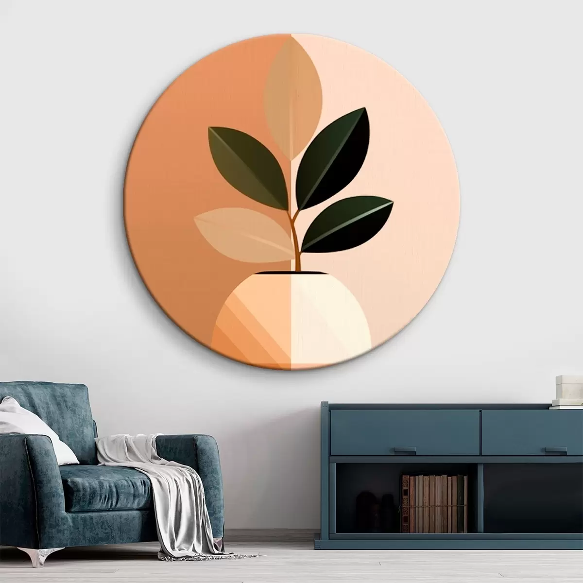 Кругла картина Геометрична ваза з листям Nr r45833