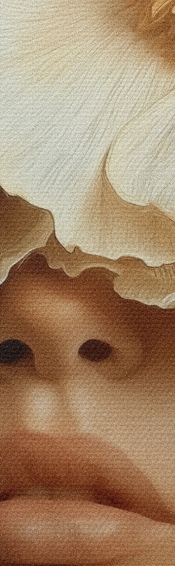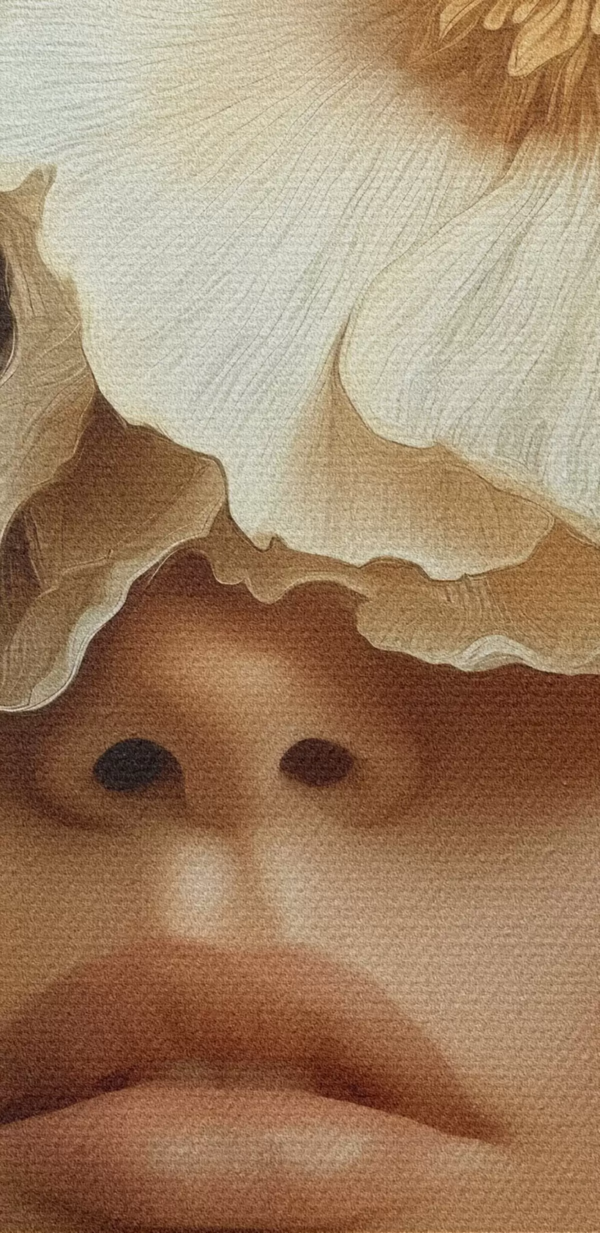 Кругла картина Портрет з бежевими квітами, що прикривають очі Nr r45870