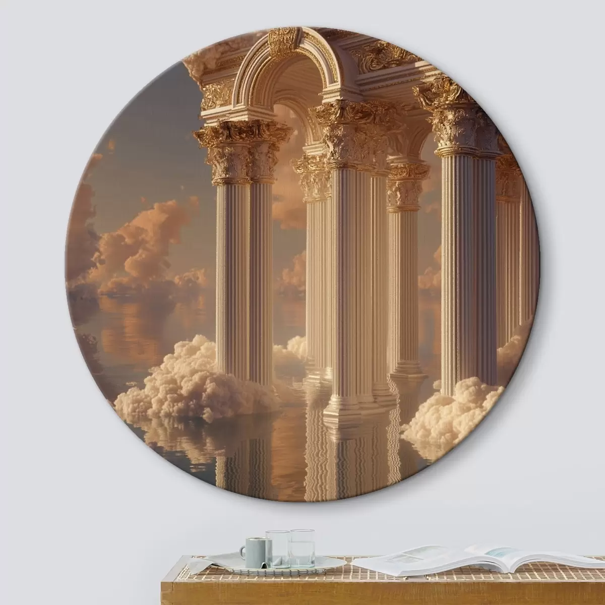 Кругла картина Стовпи в хмарах, відбитки на воді r45881