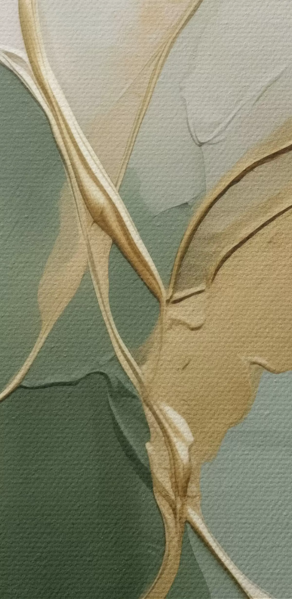 Кругла картина Смарагдово-кремова абстракція з жовтими струмками r45887
