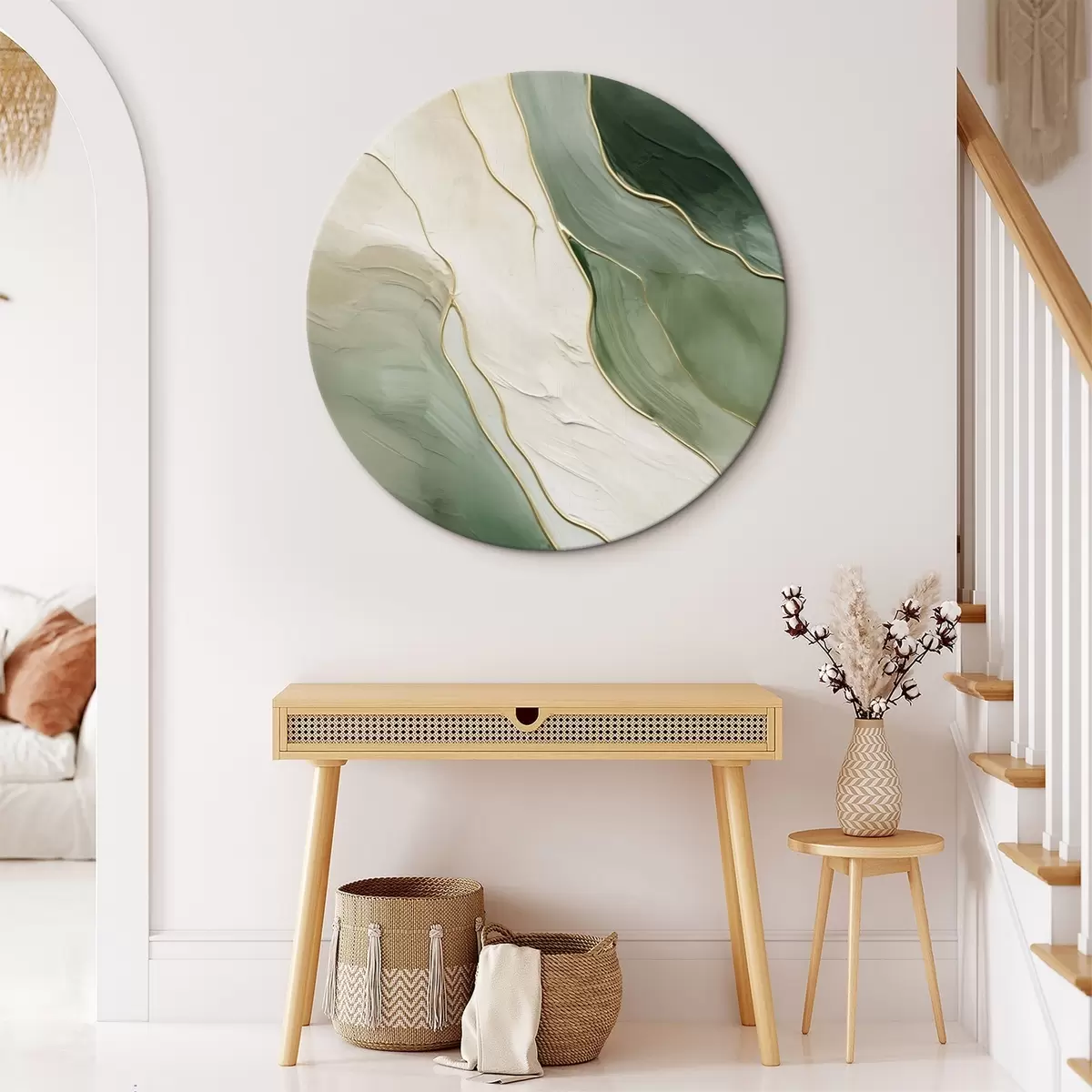 Кругла картина Смарагдова абстракція з тонкими жовтими лініями r45888