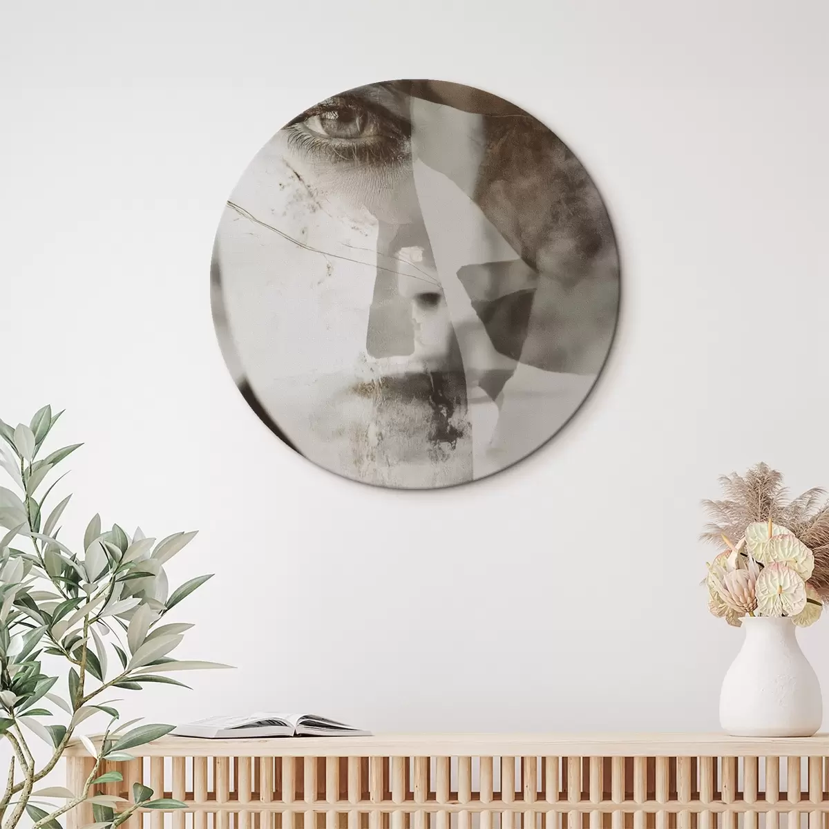 Кругла картина Абстрактний портрет у сепії, текстурах і плямах Nr r45897