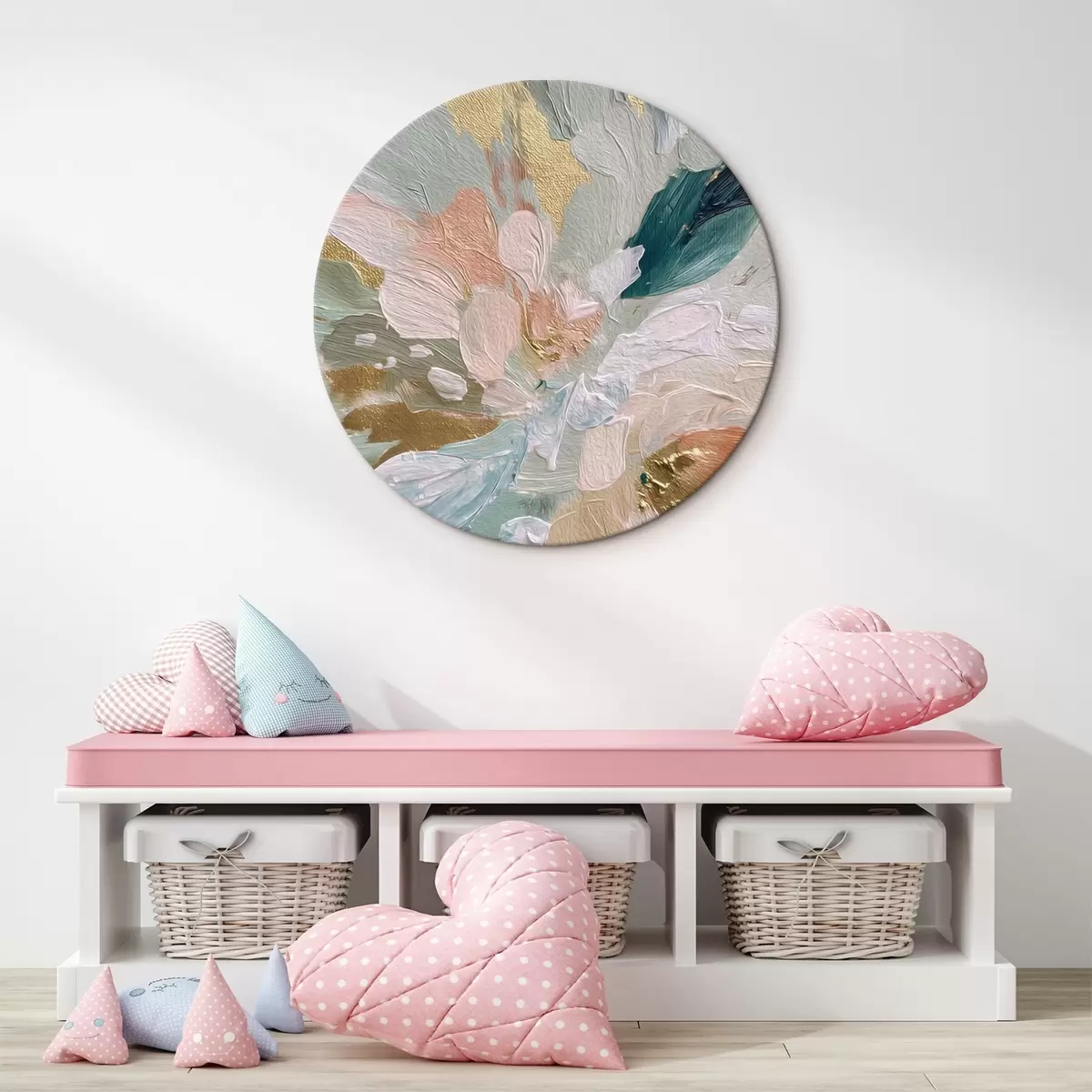 Кругла картина Пастельні квіткові штрихи з жовтими вкрапленнями Nr r45899