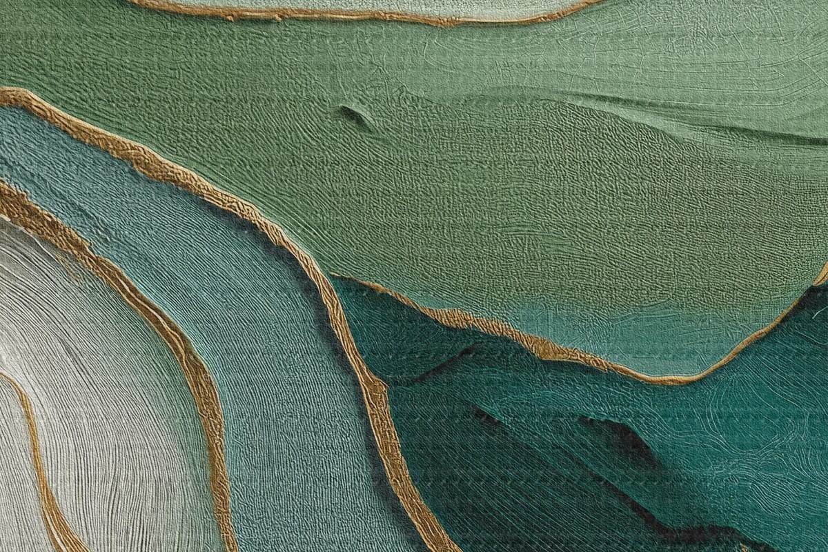 Кругла картина Багатошарова зелена абстракція з жовтими лініями та глибиною r45902