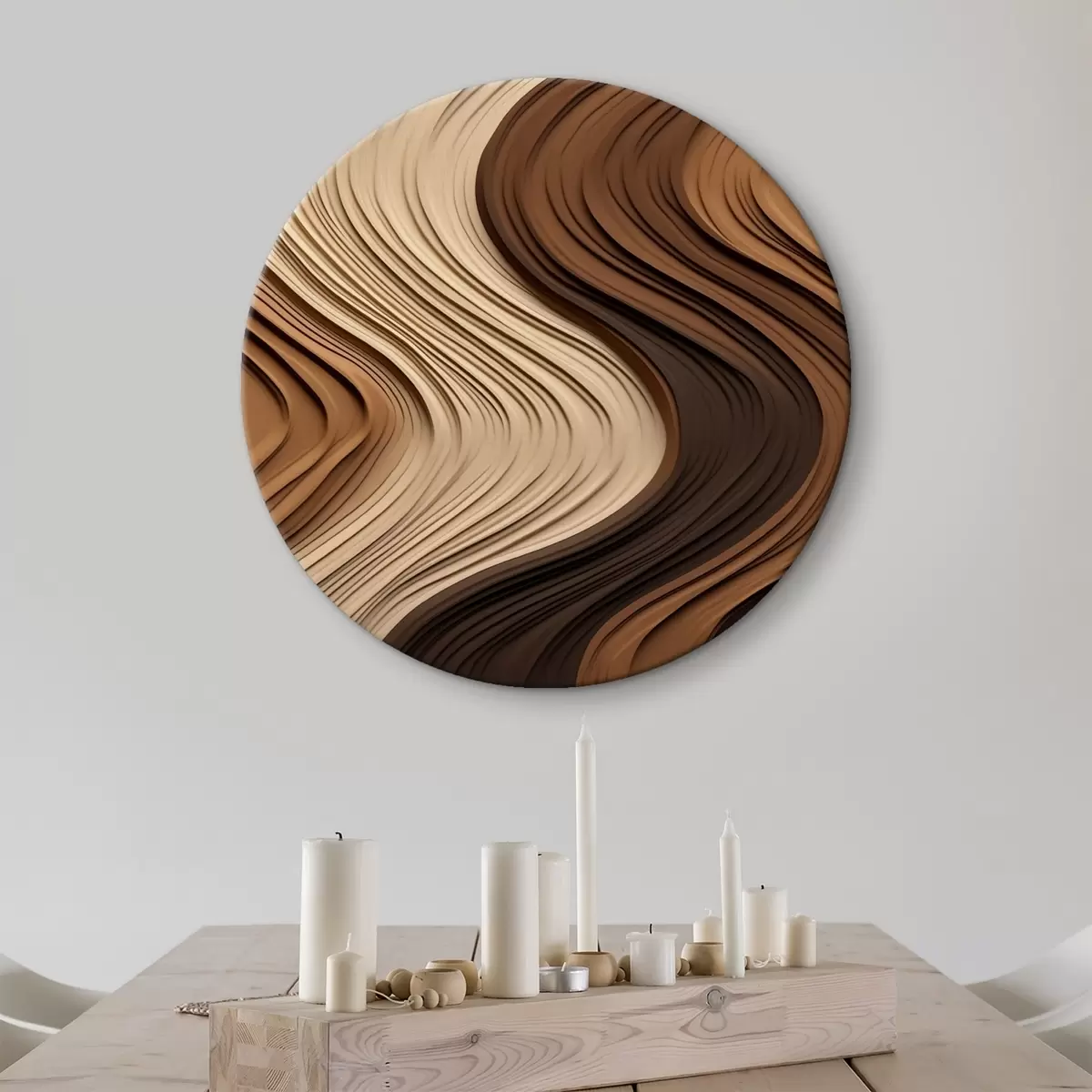 Кругла картина Вертикальні хвилі в теплих бежево-коричневих шарах r45905