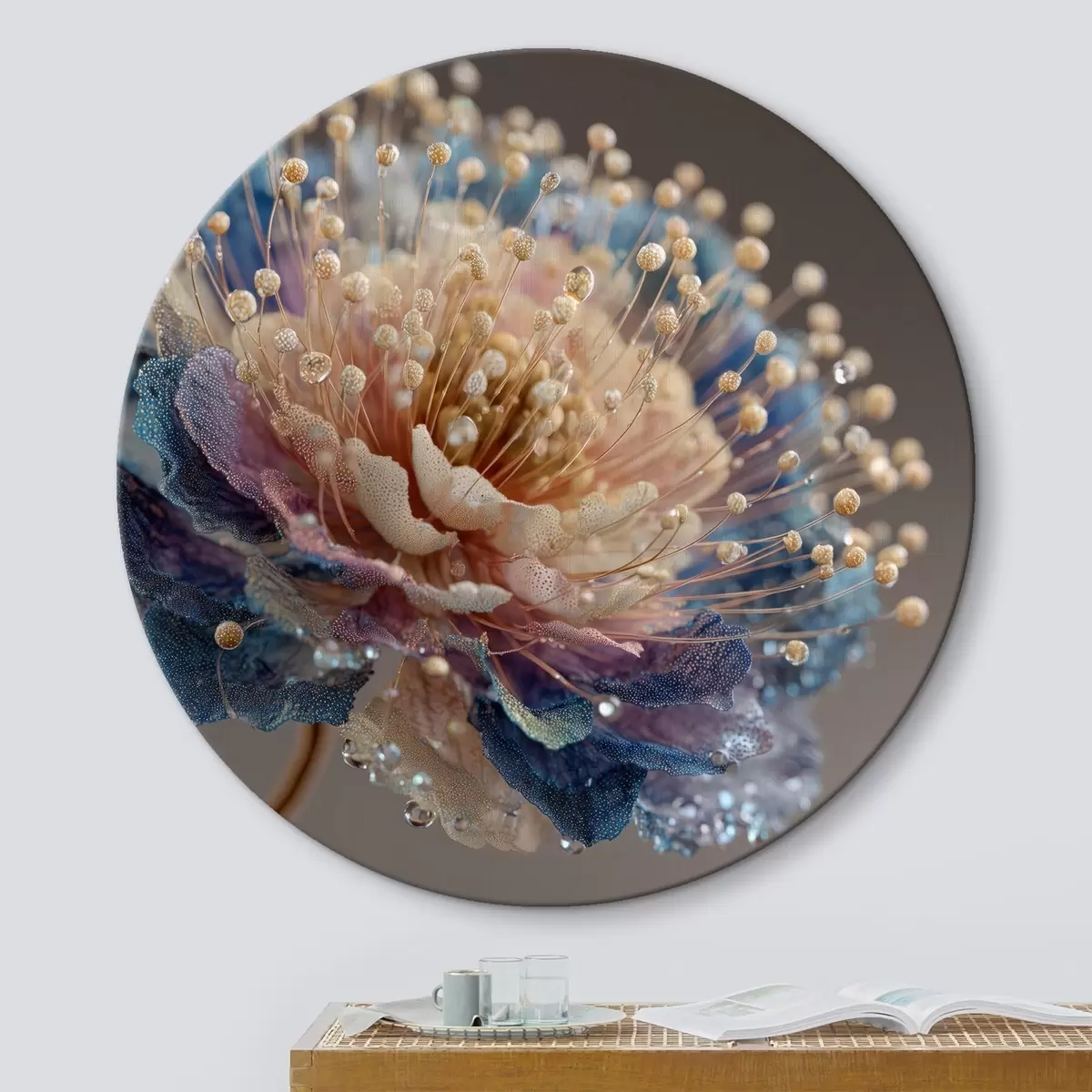 Кругла картина Перламутровий квітка з краплями роси, персиково-блакитними пелюстками Nr r45911