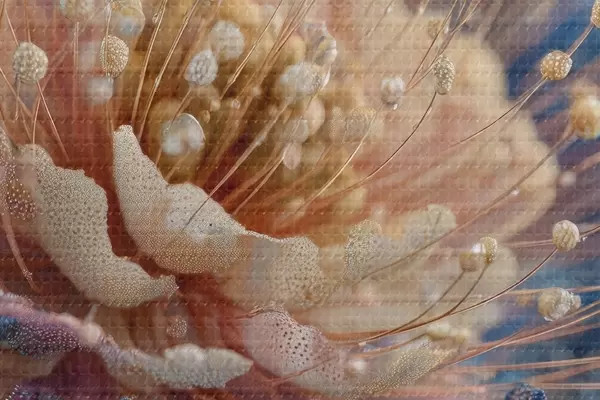 Кругла картина Перламутровий квітка з краплями роси, персиково-блакитними пелюстками Nr r45911