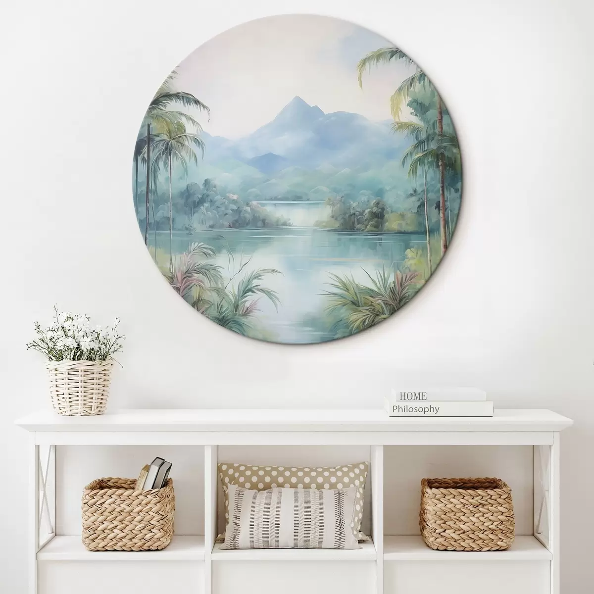 Кругла картина Річка в джунглях перед горою Nr r45912