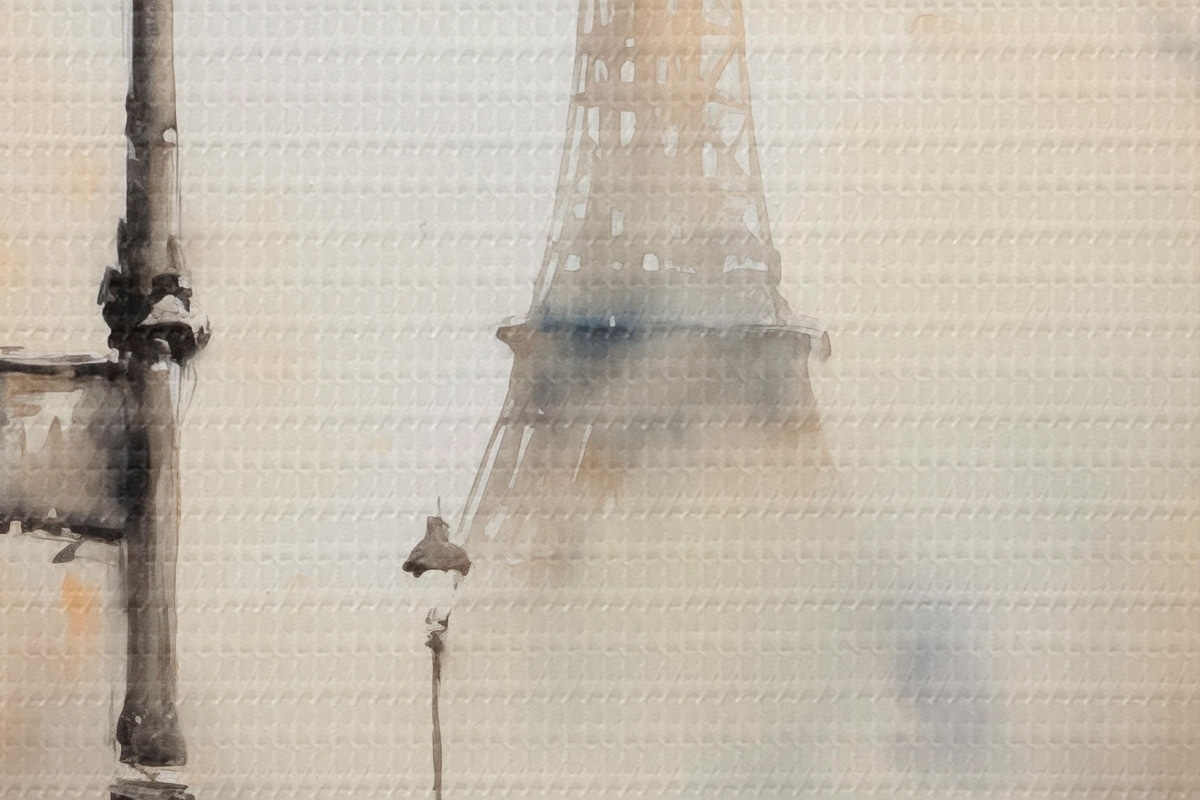 Кругла картина Дощовий осінній день у Парижі з Ейфелевою вежею на задньому плані та старовинними вуличними ліхтарями Nr r45931
