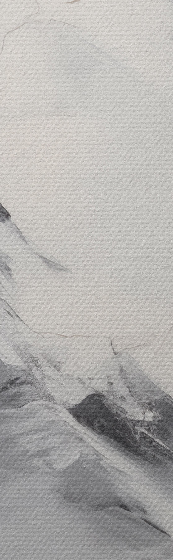 Кругла картина Засніжені гірські вершини з сірими тінями, сіре небо, мазки пензлем, текстуровані, мінімалістичні Nr r45933