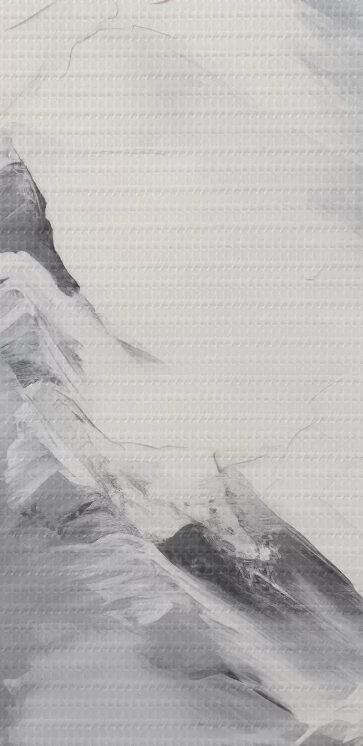 Кругла картина Засніжені гірські вершини з сірими тінями, сіре небо, мазки пензлем, текстуровані, мінімалістичні Nr r45933
