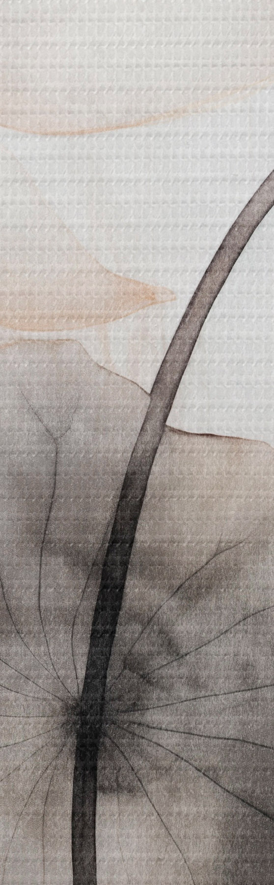 Кругла картина Білі текстуровані квіти лотоса з темними листям, світлий фон, мінімалістичний дизайн Nr r45937