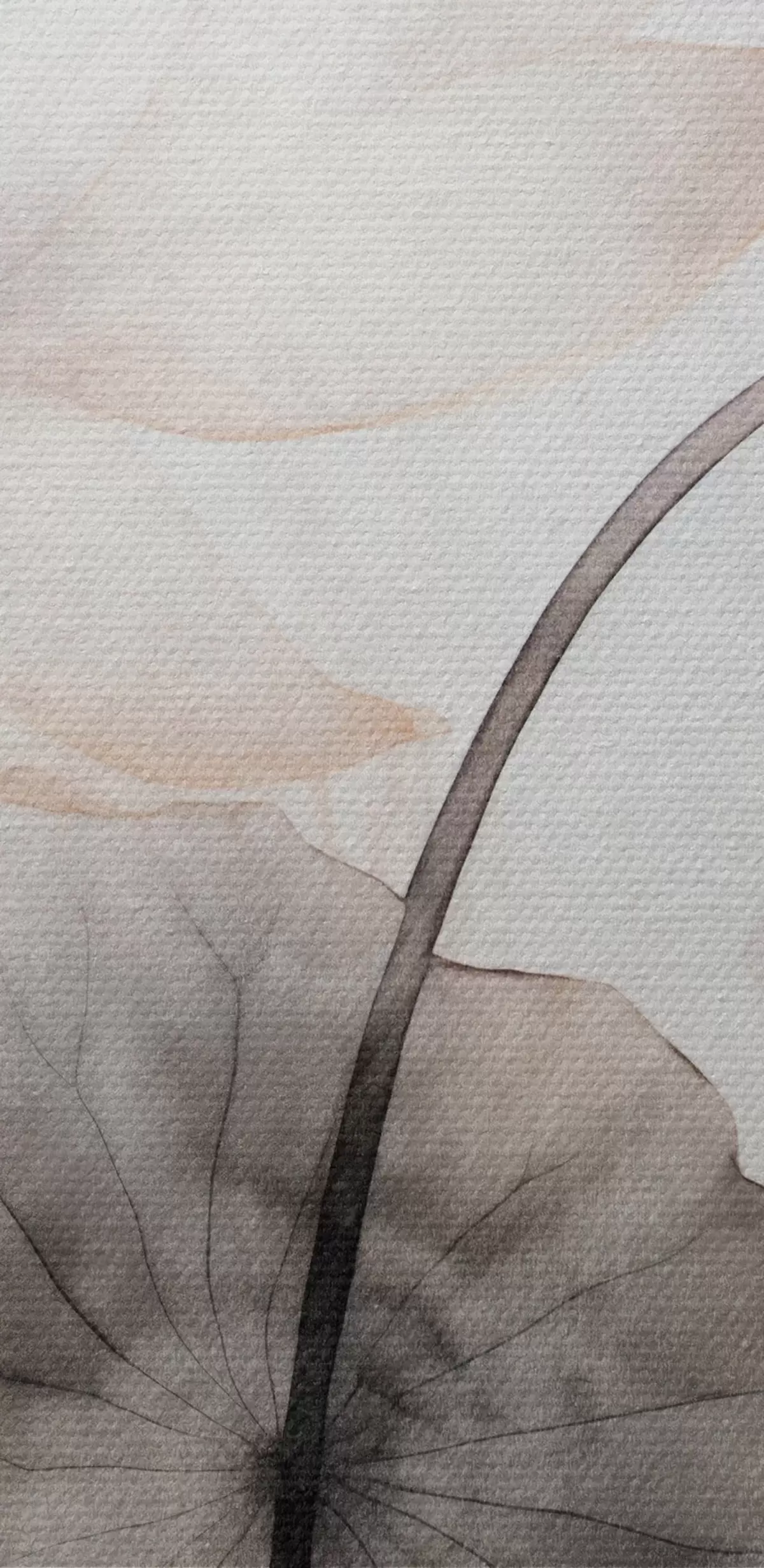 Кругла картина Білі текстуровані квіти лотоса з темними листям, світлий фон, мінімалістичний дизайн r45937