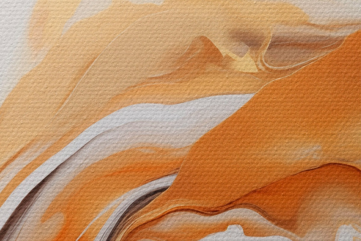 Кругла картина Абстрактна імітація живопису з плавними формами в відтінках білого, оранжевого та коричневого, мінімалістична r45938