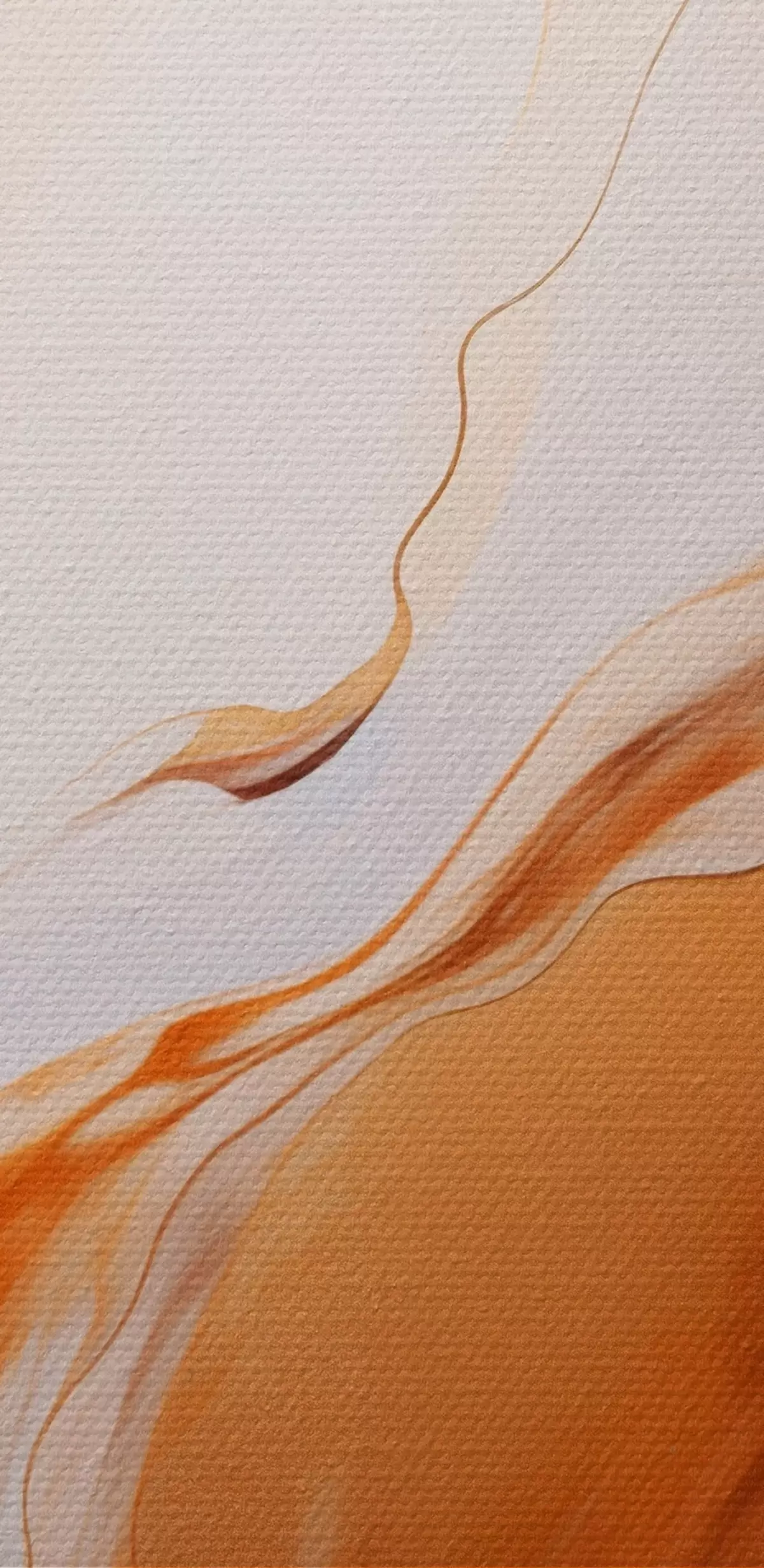 Кругла картина Абстрактна імітація живопису білими та помаранчевими кольорами, флюїдне мистецтво з хвилястими лініями, сучасне мистецтво Nr r45939