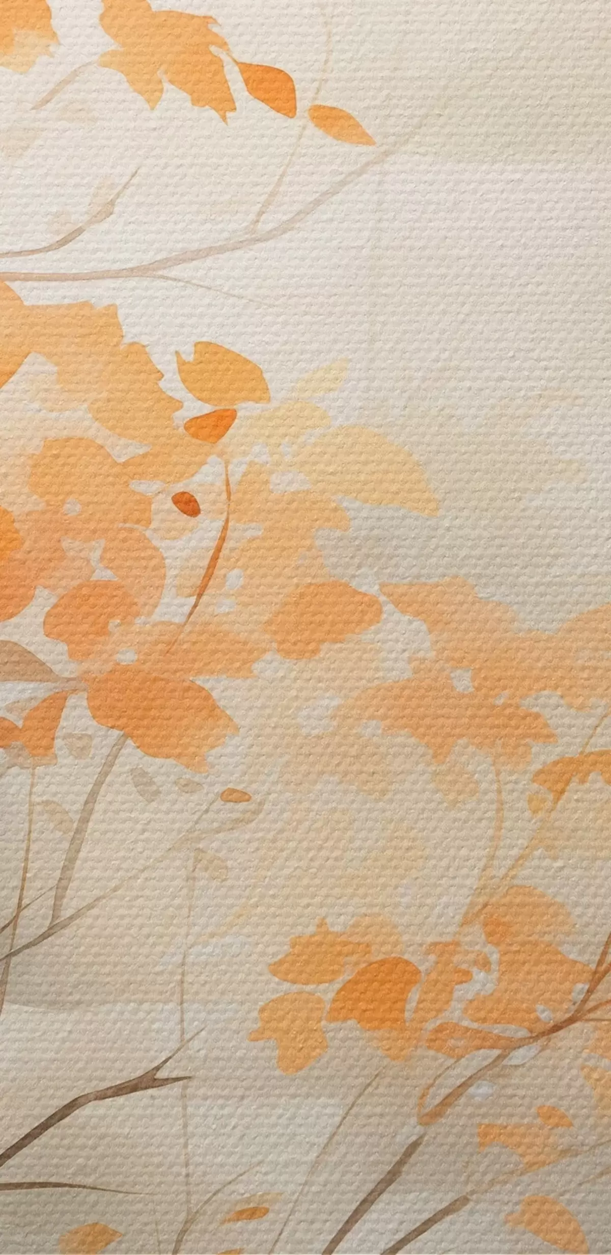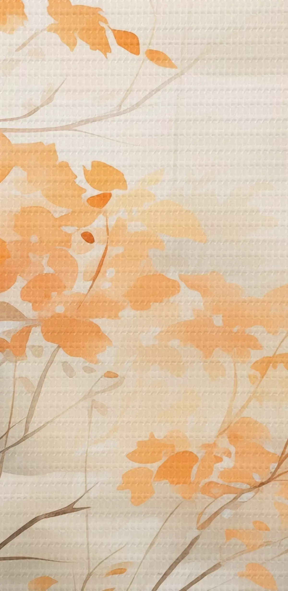 Кругла картина Осінні дерева з помаранчевим листям і гілками, м'який акварельний стиль, ніжні мазки пензлем Nr r45941