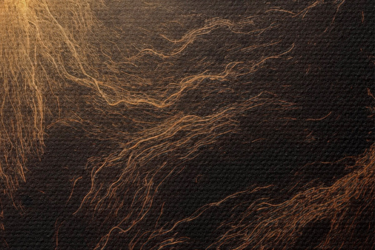 Кругла картина Абстрактна планета з помаранчевими прожилками на чорному космічному тлі, сучасне мінімалістичне мистецтво Nr r45943