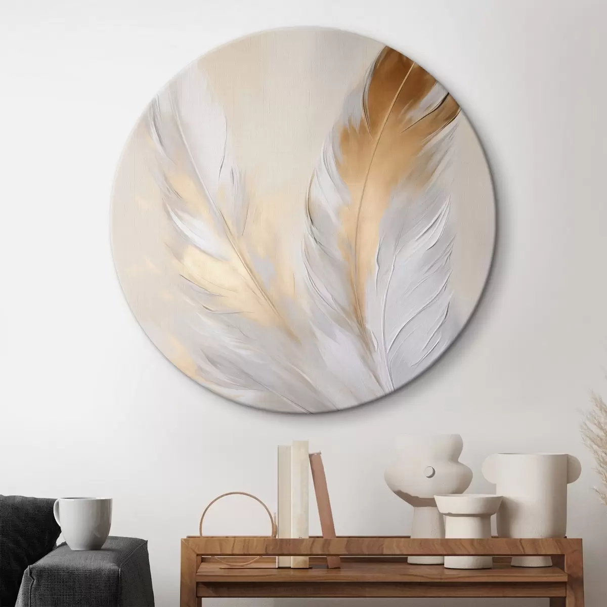 Кругла картина Пір'я з помаранчевими акцентами, м'яке освітлення, текстурована мінімалістична композиція, сучасне мистецтво Nr r45944