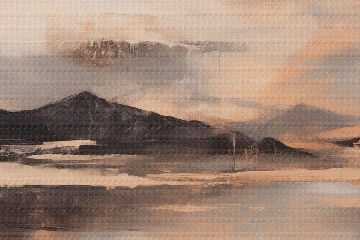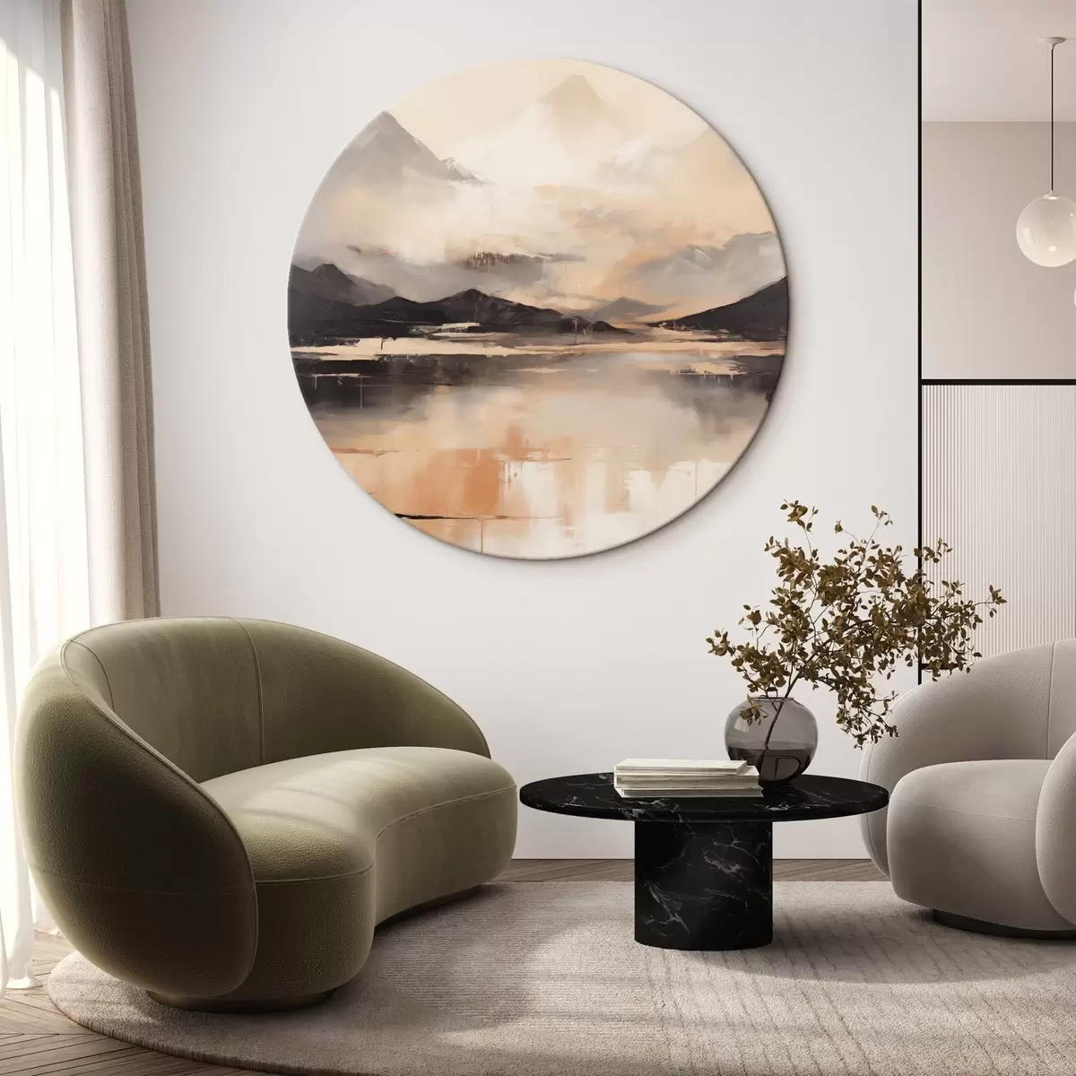 Кругла картина Пейзажна картина з текстурою, що імітує гори та озеро Nr r45950
