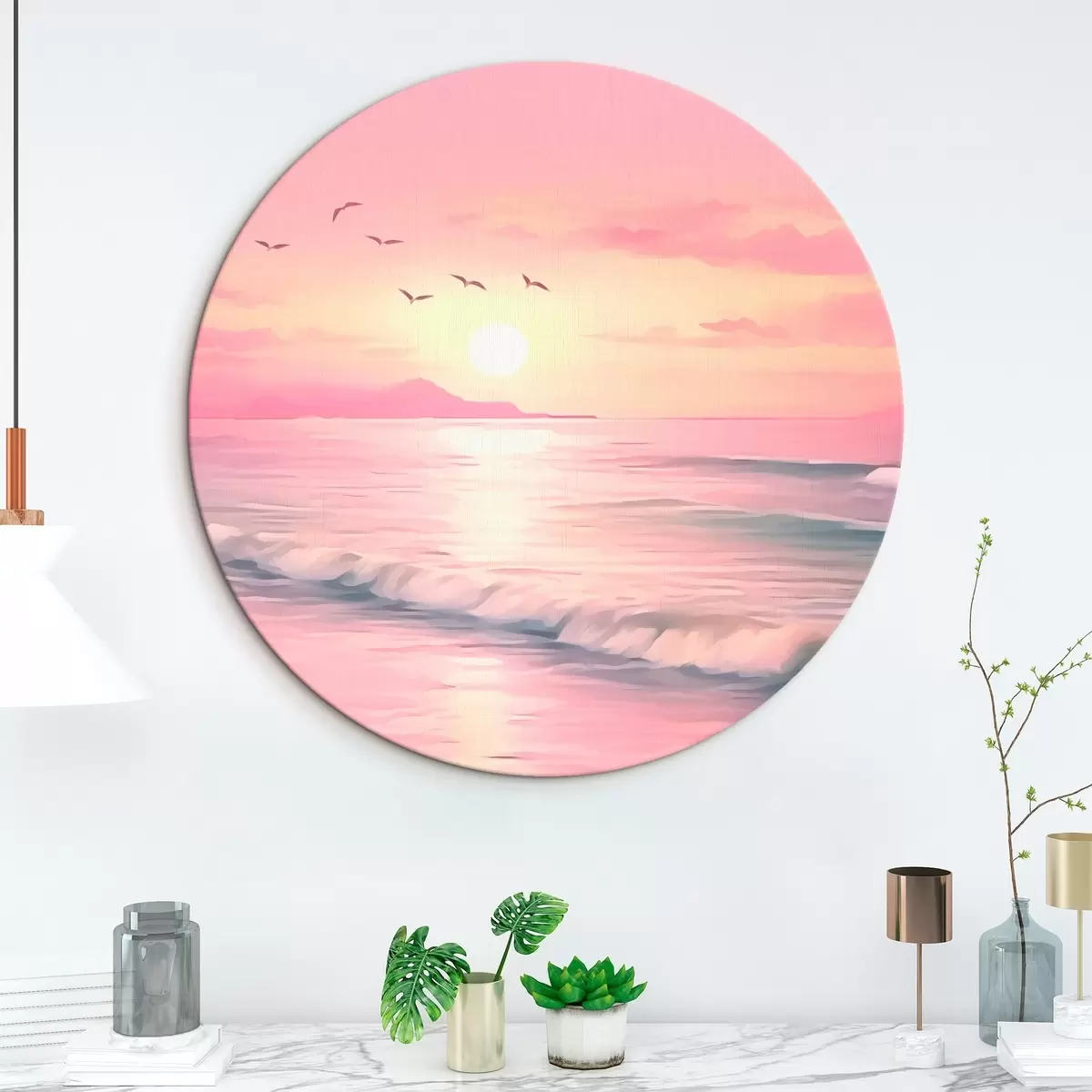 Кругла картина Рожевий захід сонця над морем Nr r45955