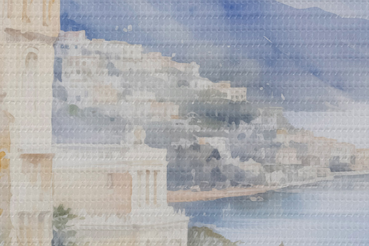 Кругла картина Затока біля міста імітація акварелі Nr r45979