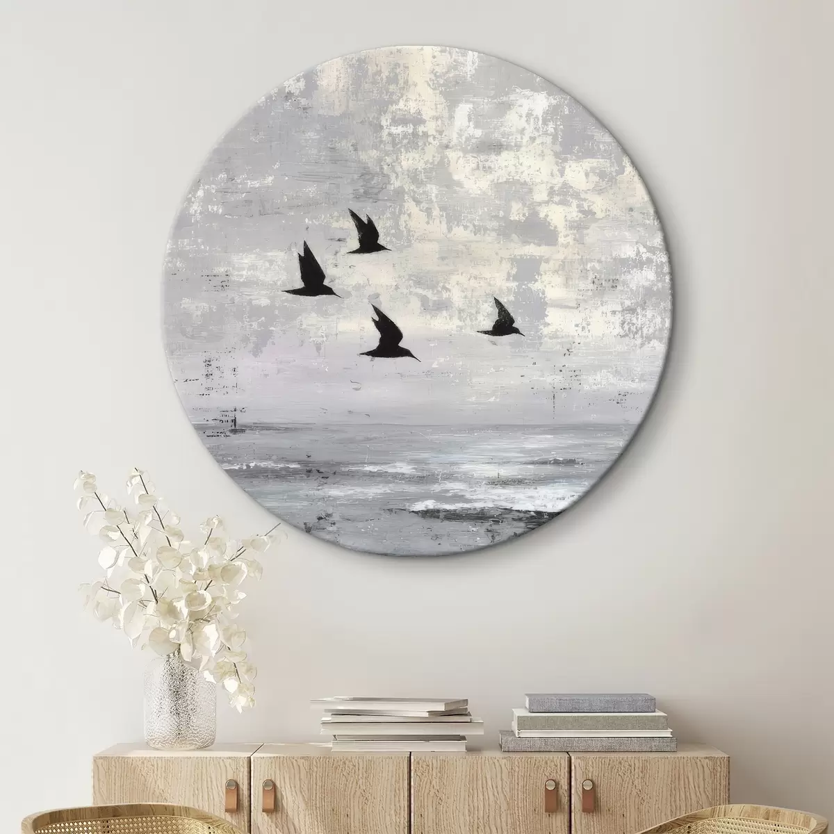 Кругла картина Абстрактний пейзаж з птахами Nr r45988