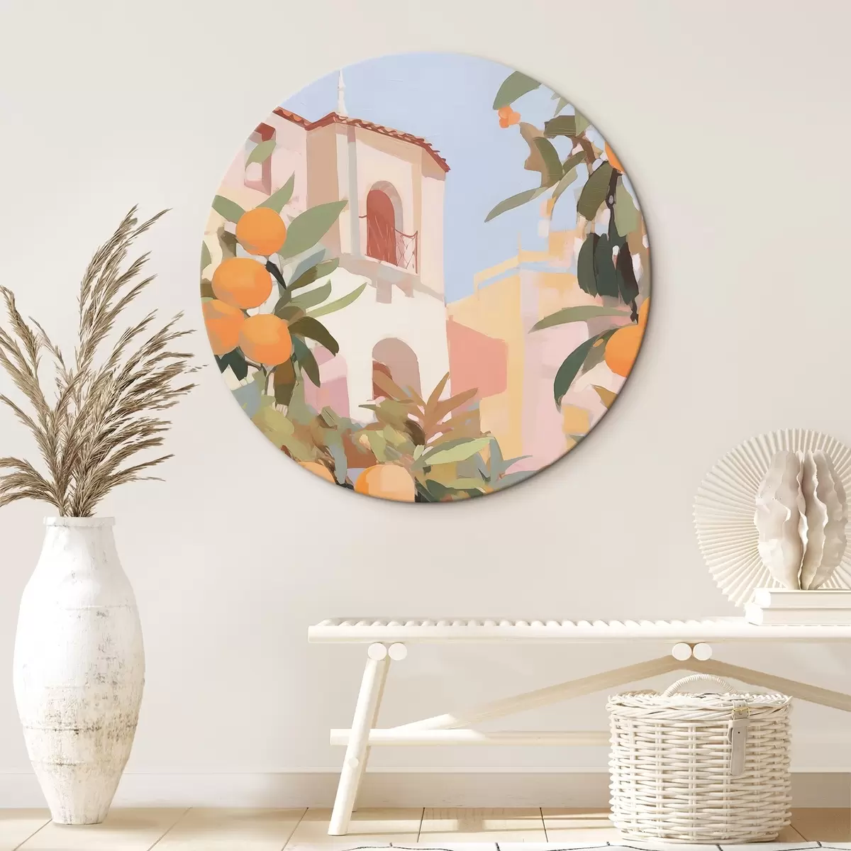 Кругла картина Апельсини на гілці перед будинком Nr r46060