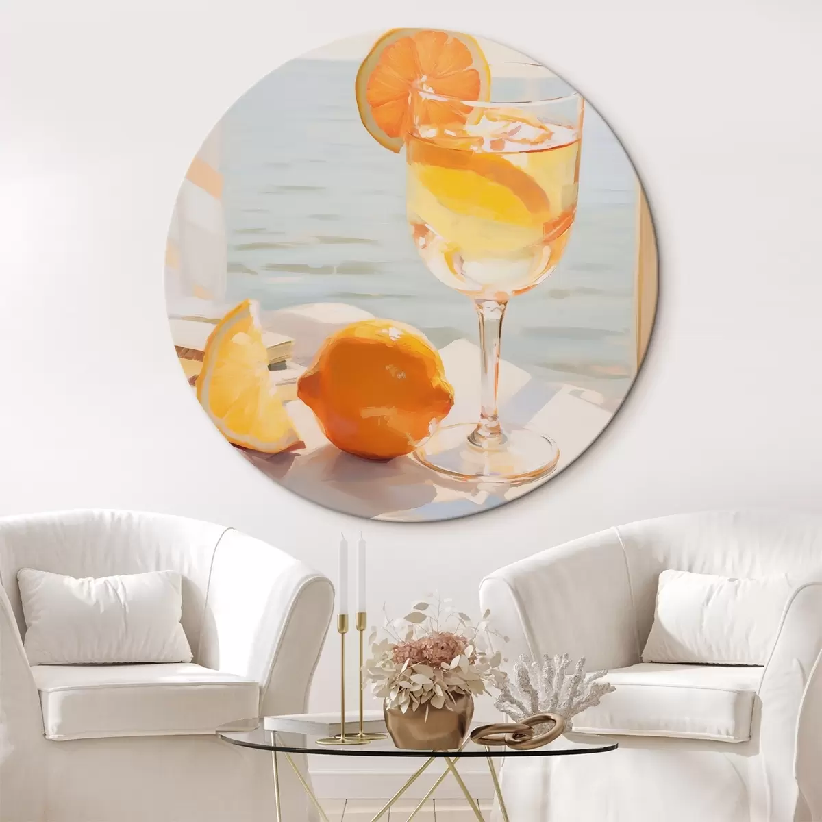 Кругла картина Коктейль у склянці біля вікна Nr r46064