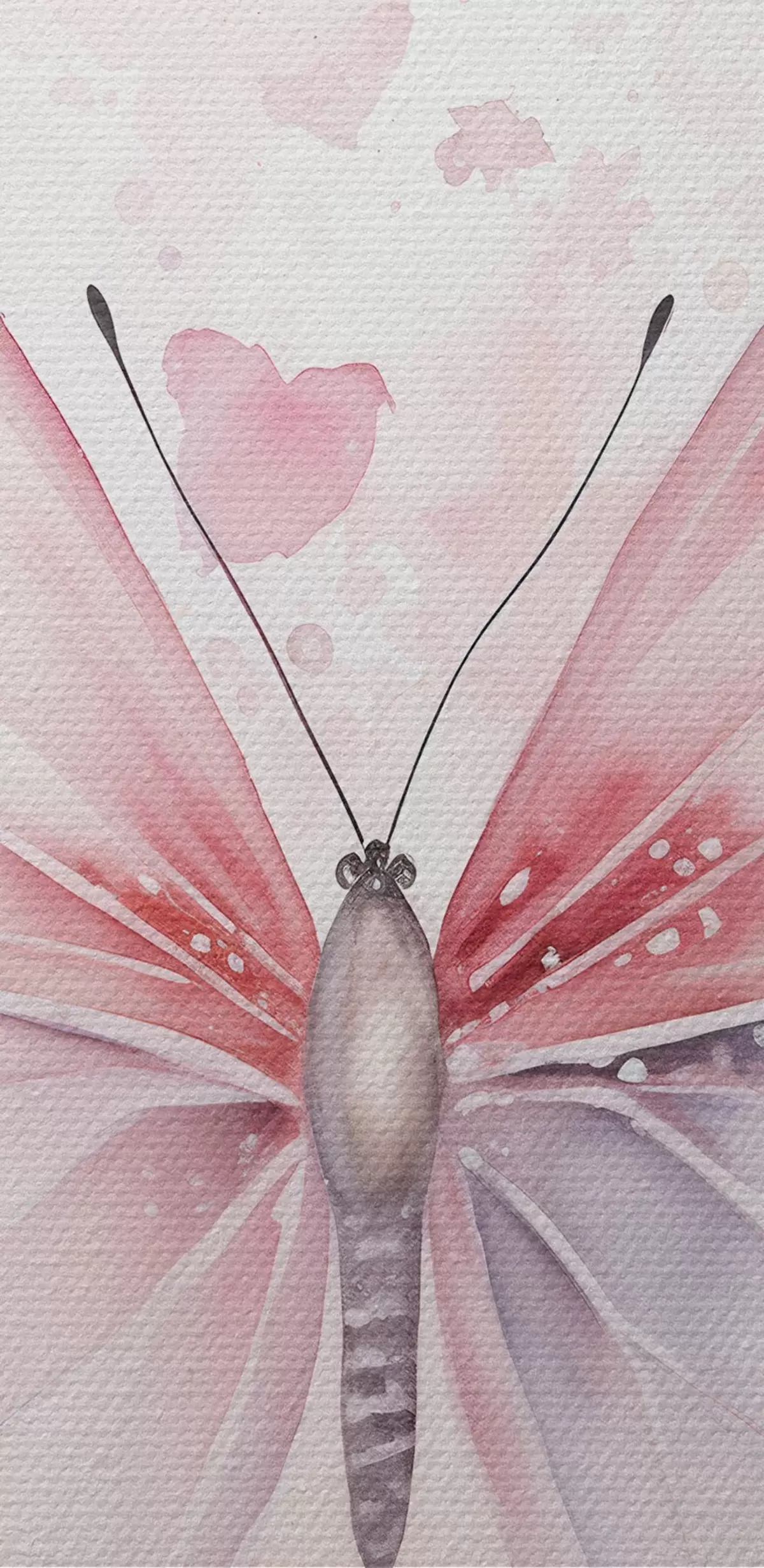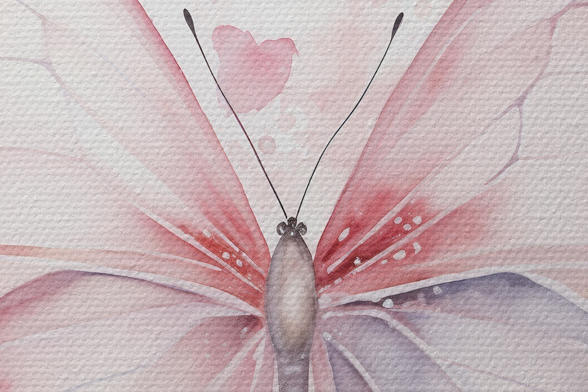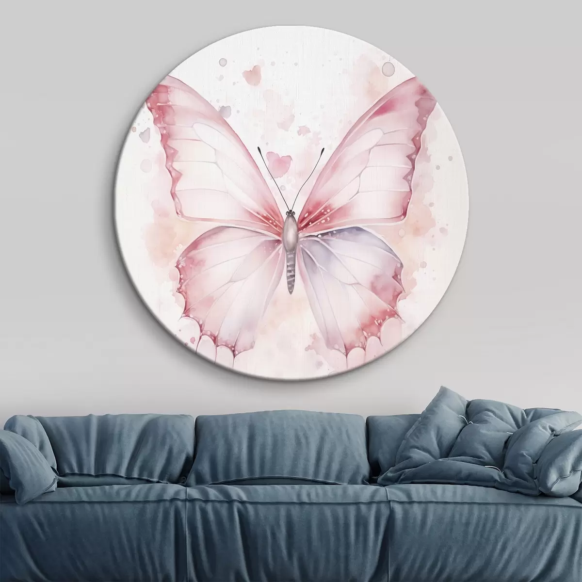 Кругла картина Рожевий метелик, техніка акварелі r46073