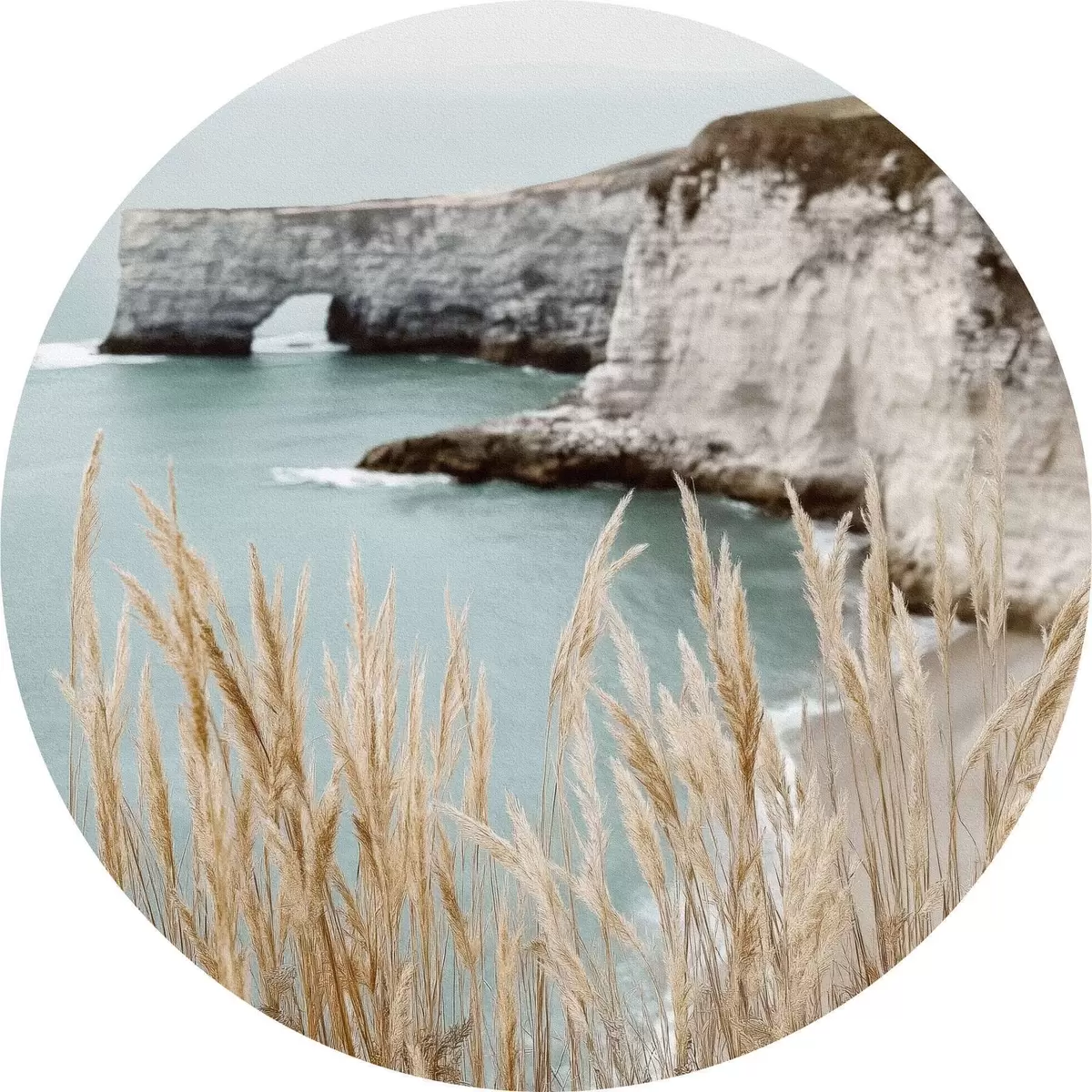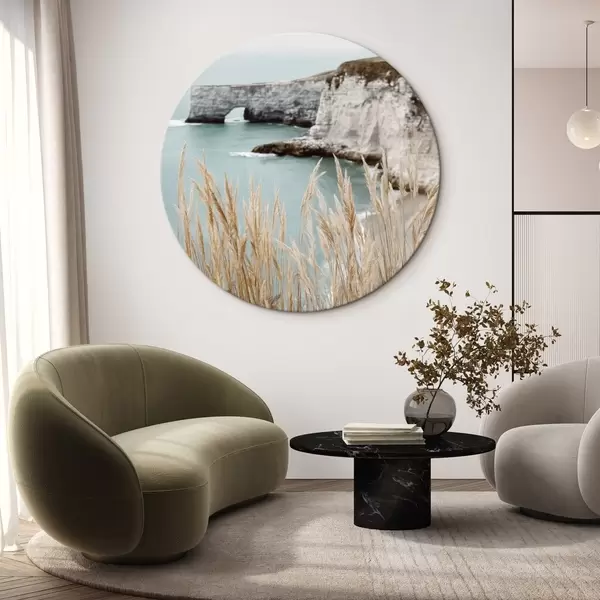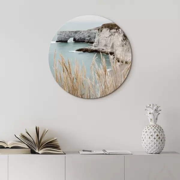 Кругла картина Прибережні скелі з очеретом на передньому плані Nr r46141