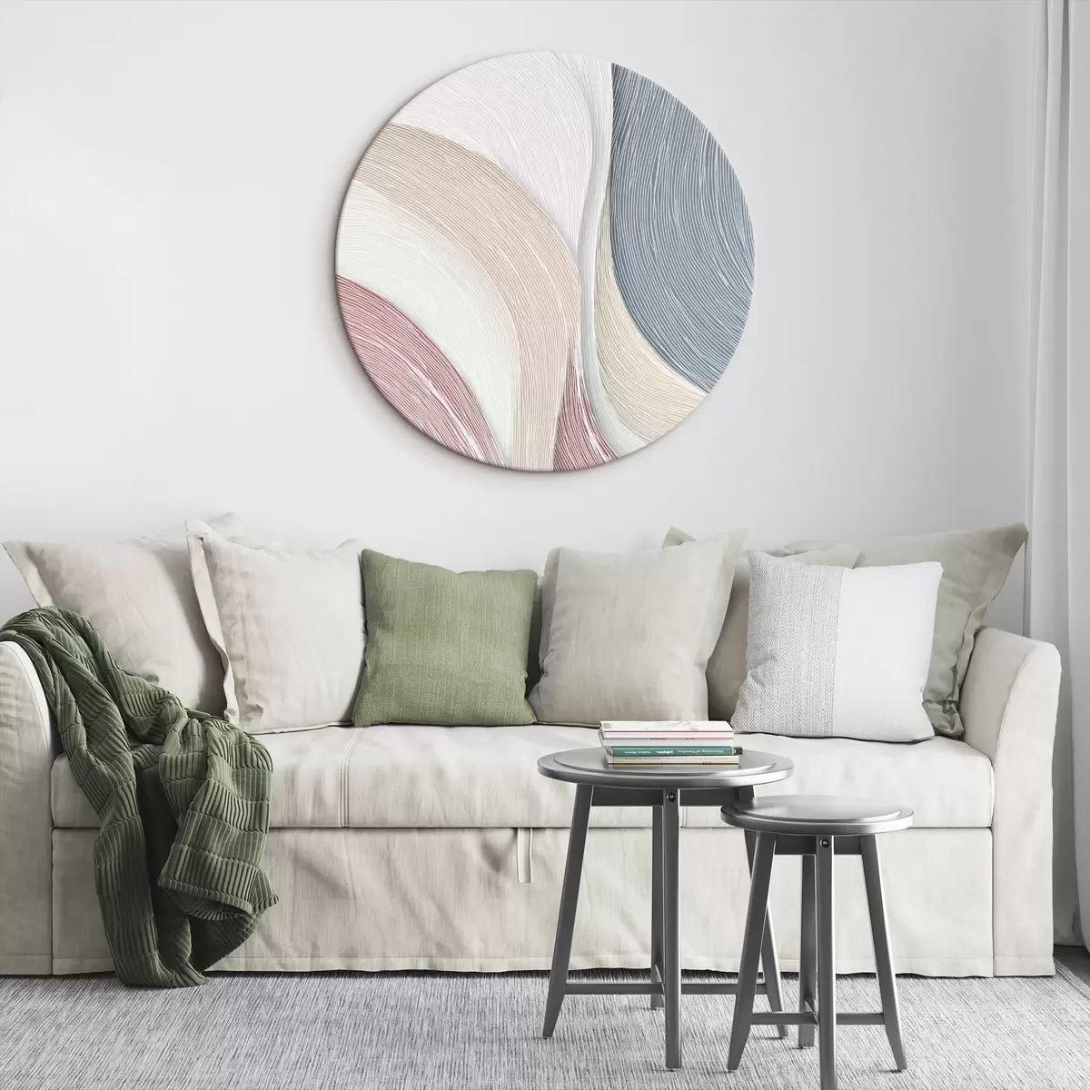 Кругла картина Легкі абстрактні хвилі в ніжно-рожевих і сіро-білих відтінках Nr r46153