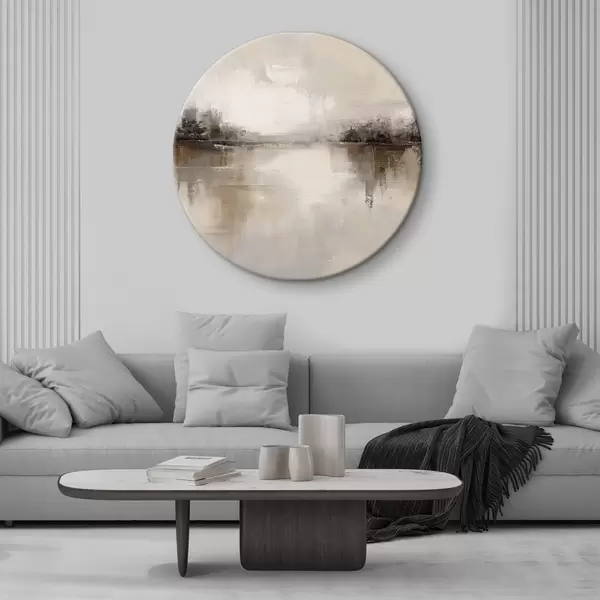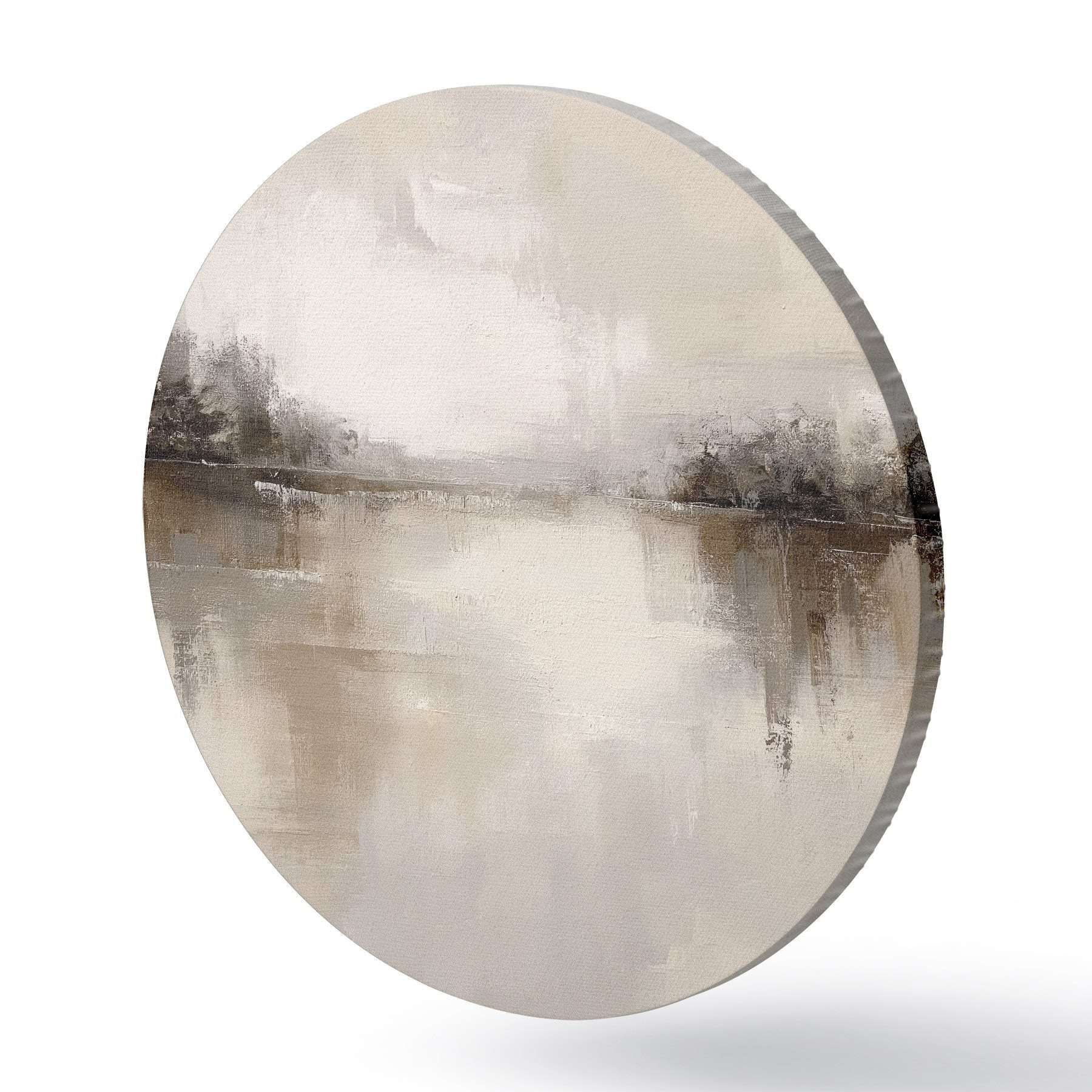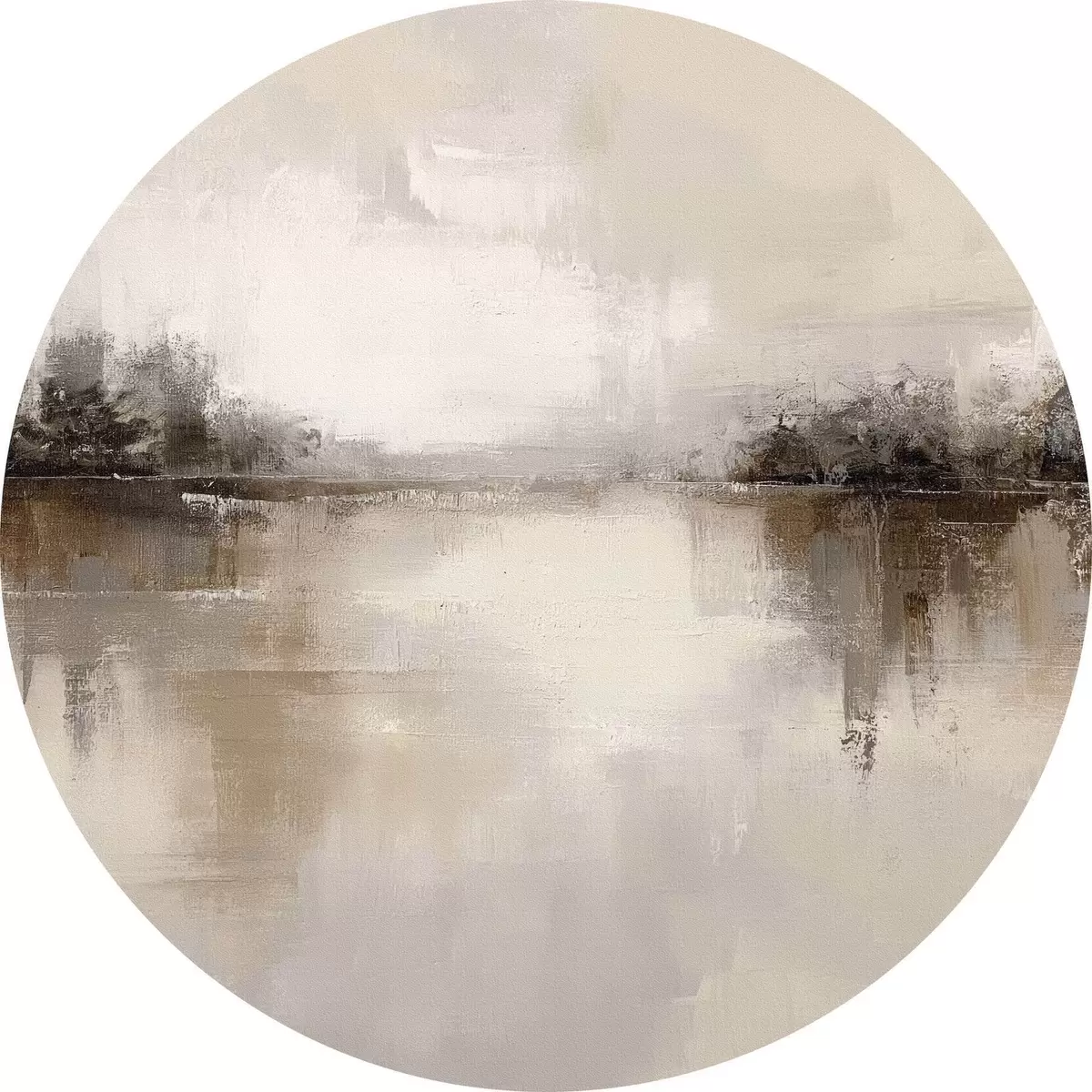 Кругла картина М'який ландшафт з озером в теплих бежево-сірих тонах Nr r46158