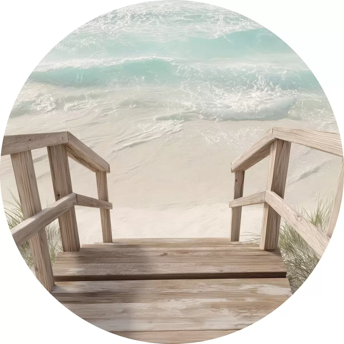 Кругла картина Дерев'яні сходи, що ведуть до бірюзового пляжу Nr r46163