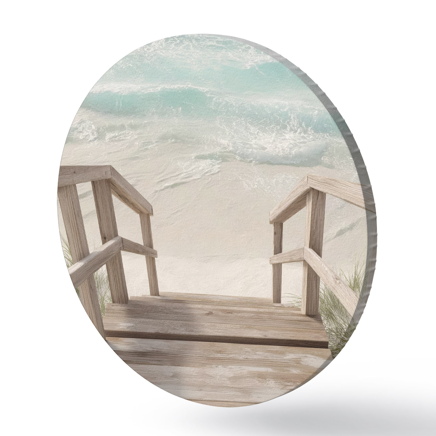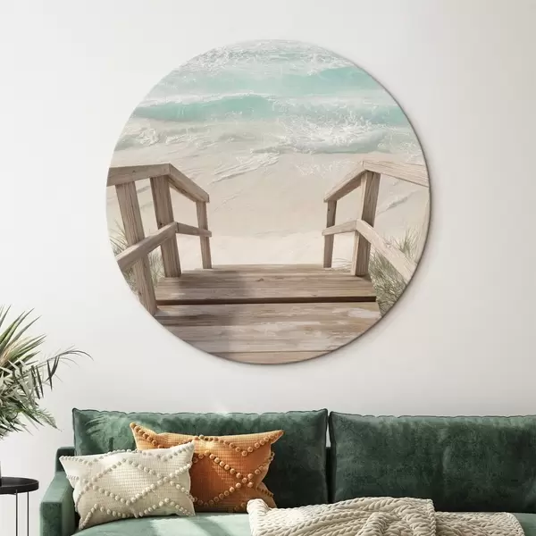 Кругла картина Дерев'яні сходи, що ведуть до бірюзового пляжу r46163