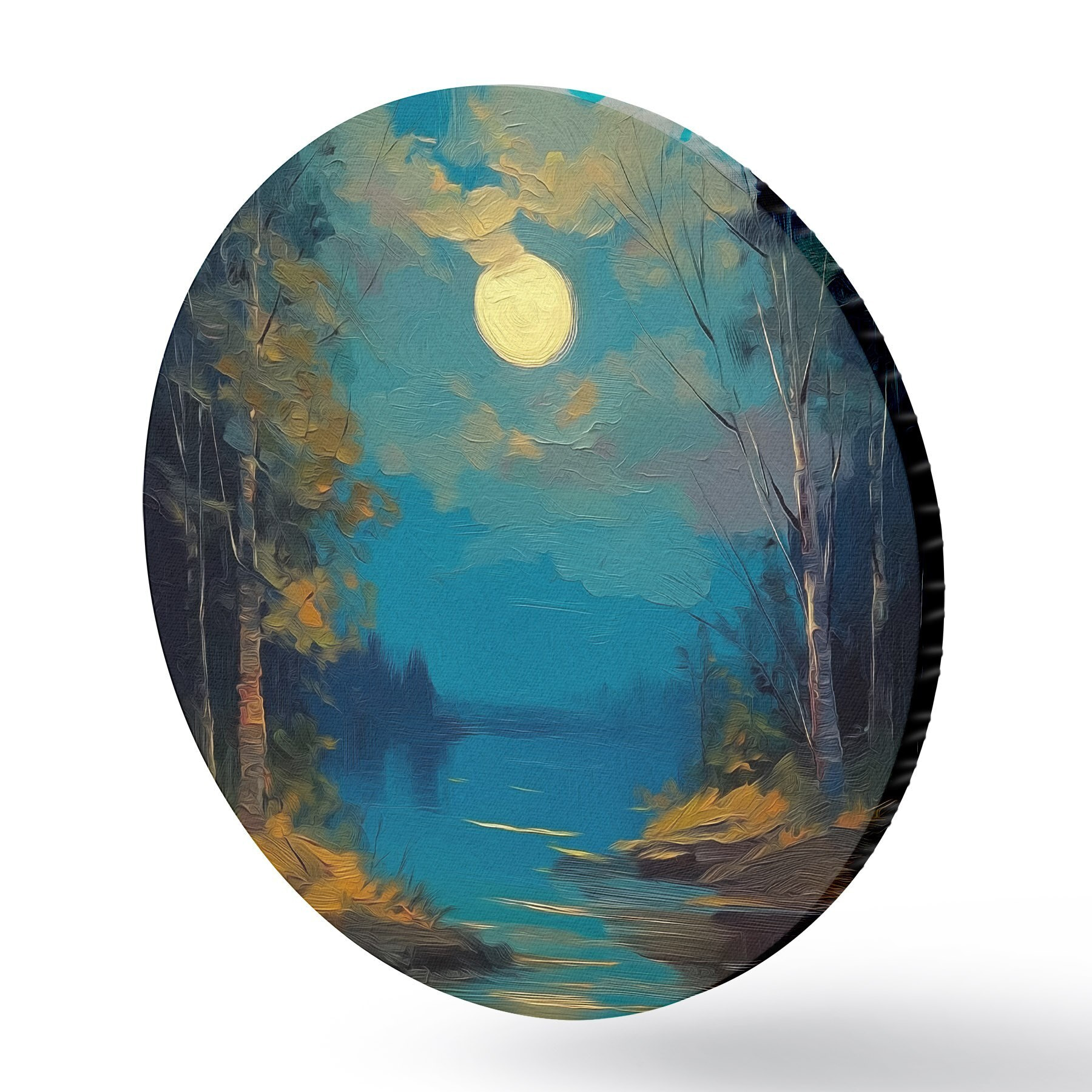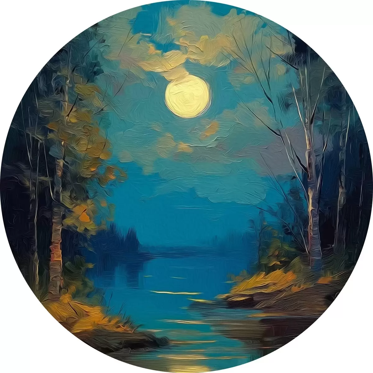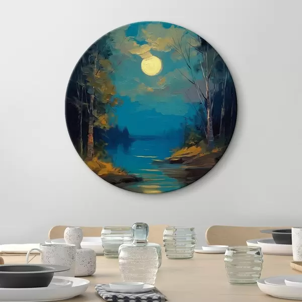 Кругла картина Місячне світло над спокійною річкою серед сосен Nr r46164