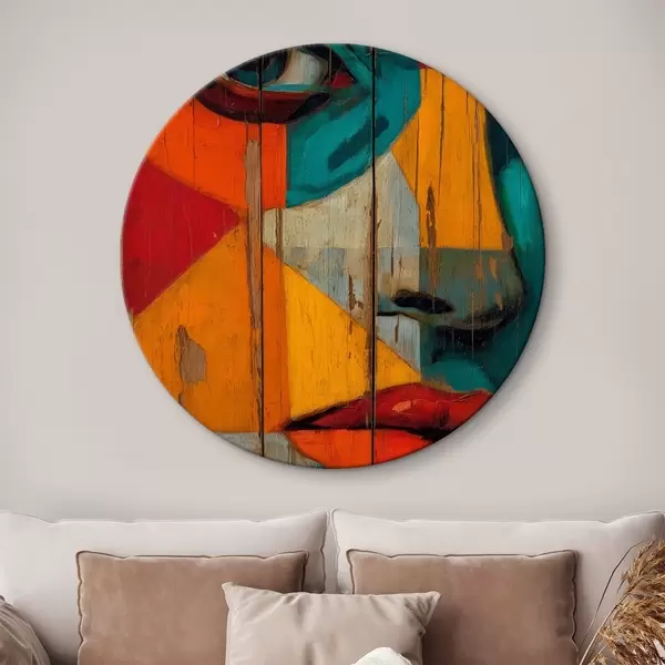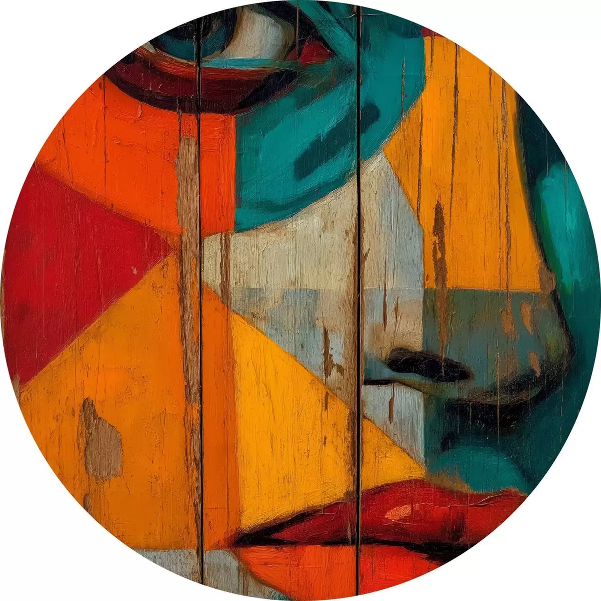 Кругла картина Яскравий геометричний портрет на дерев'яних дошках r46165