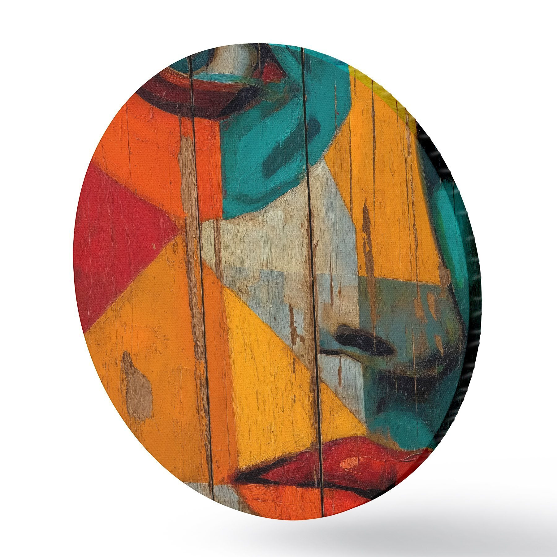 Кругла картина Яскравий геометричний портрет на дерев'яних дошках Nr r46165