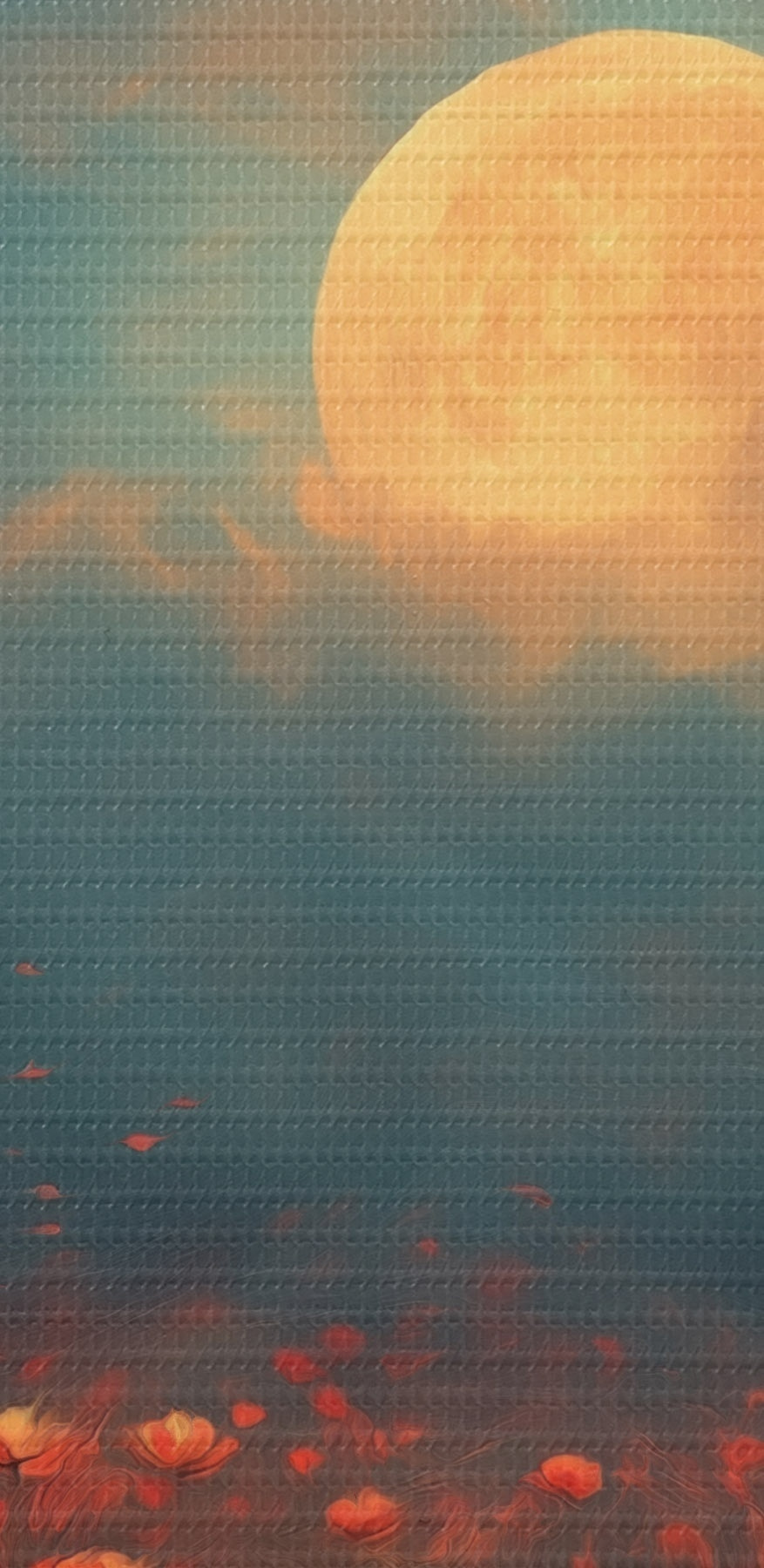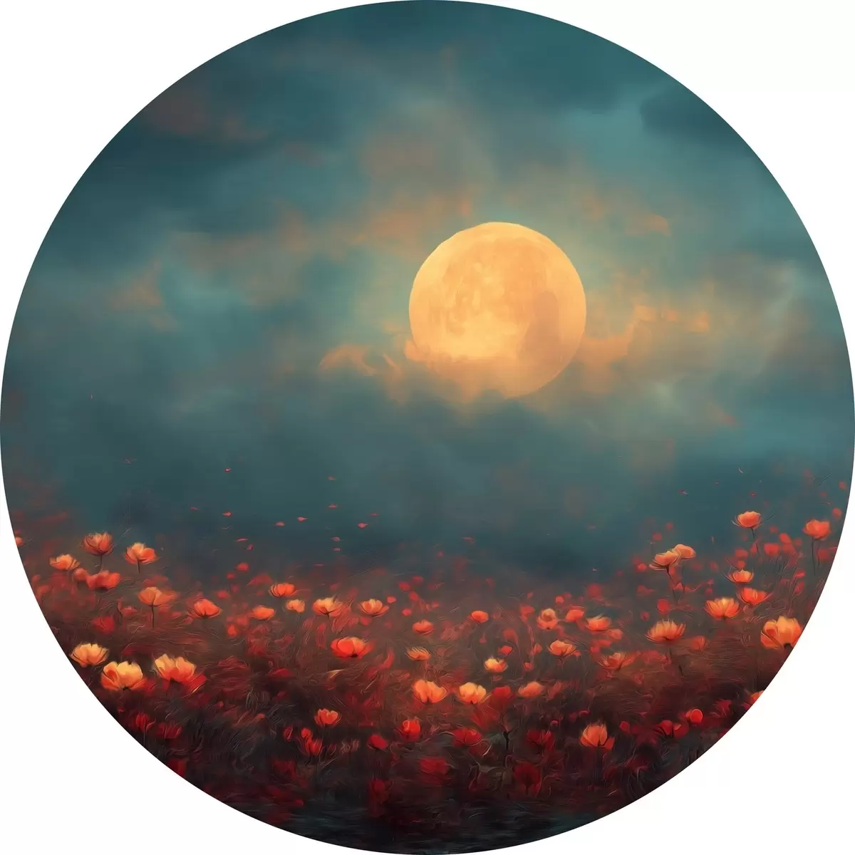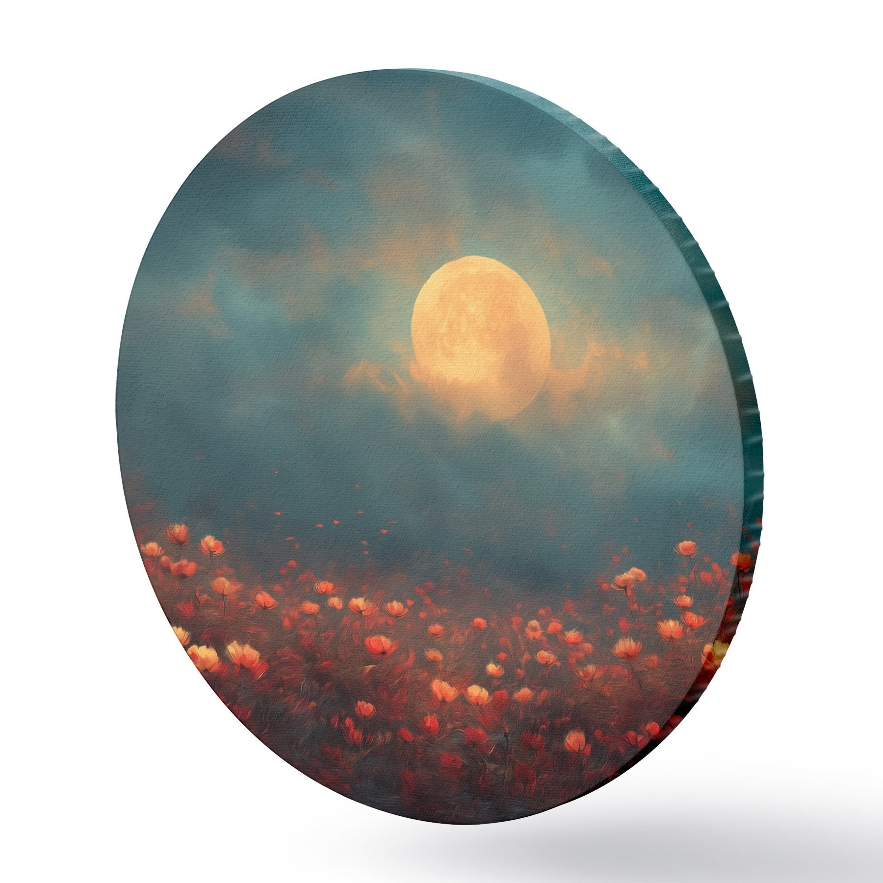 Кругла картина Місяць над полем червоних квітів у туманному вечірньому небі Nr r46167
