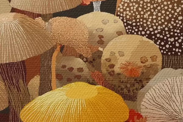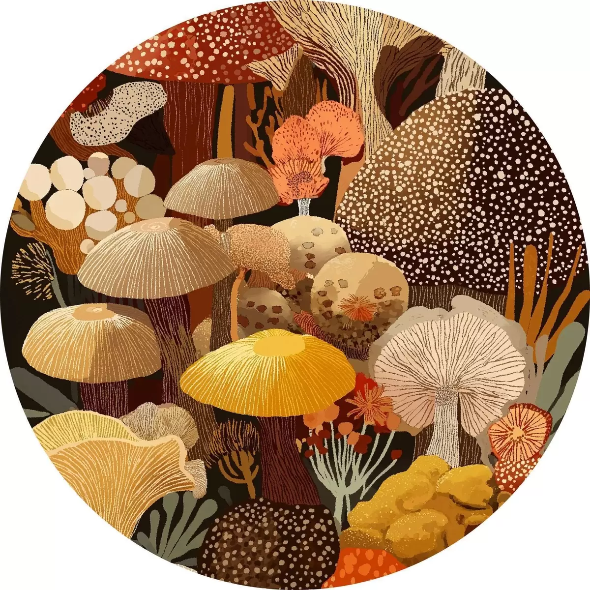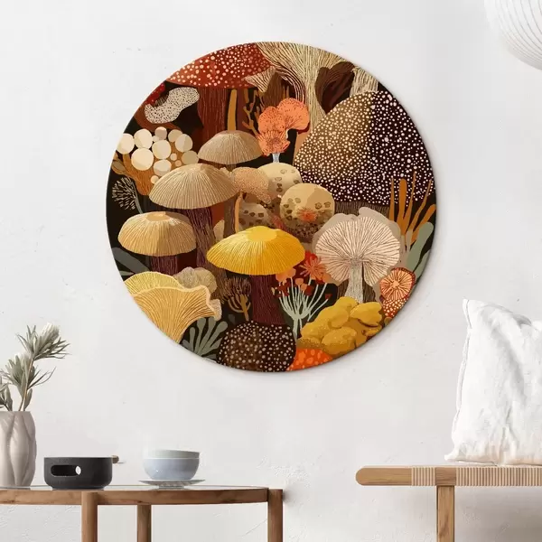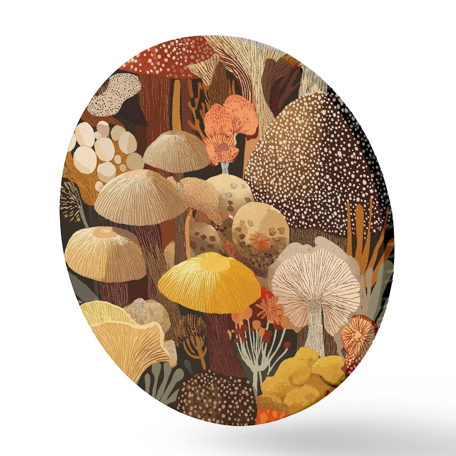 Кругла картина Композиція з різних лісових грибів у теплих тонах r46170