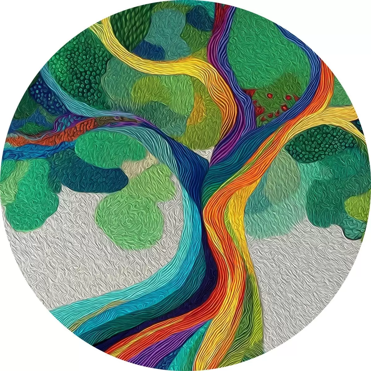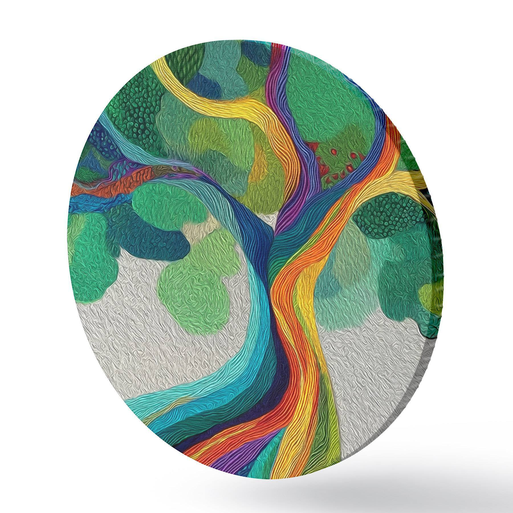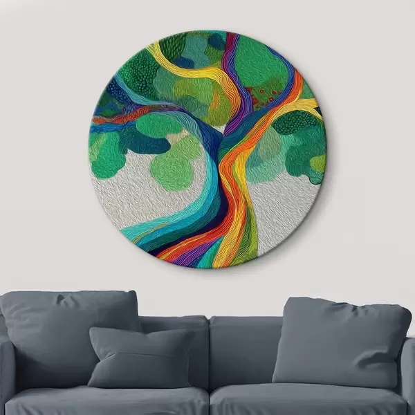 Кругла картина Дерево з веселковими гілками на зеленому тлі Nr r46173