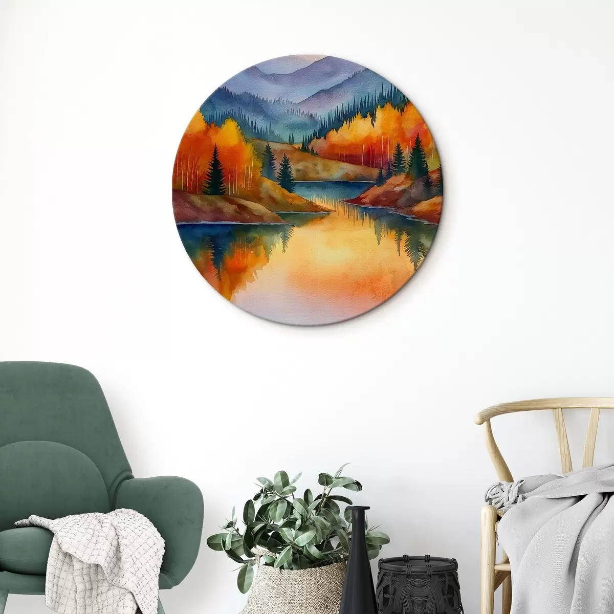 Кругла картина Осінній пейзаж з горами, що відбиваються в спокійному озері Nr r46174