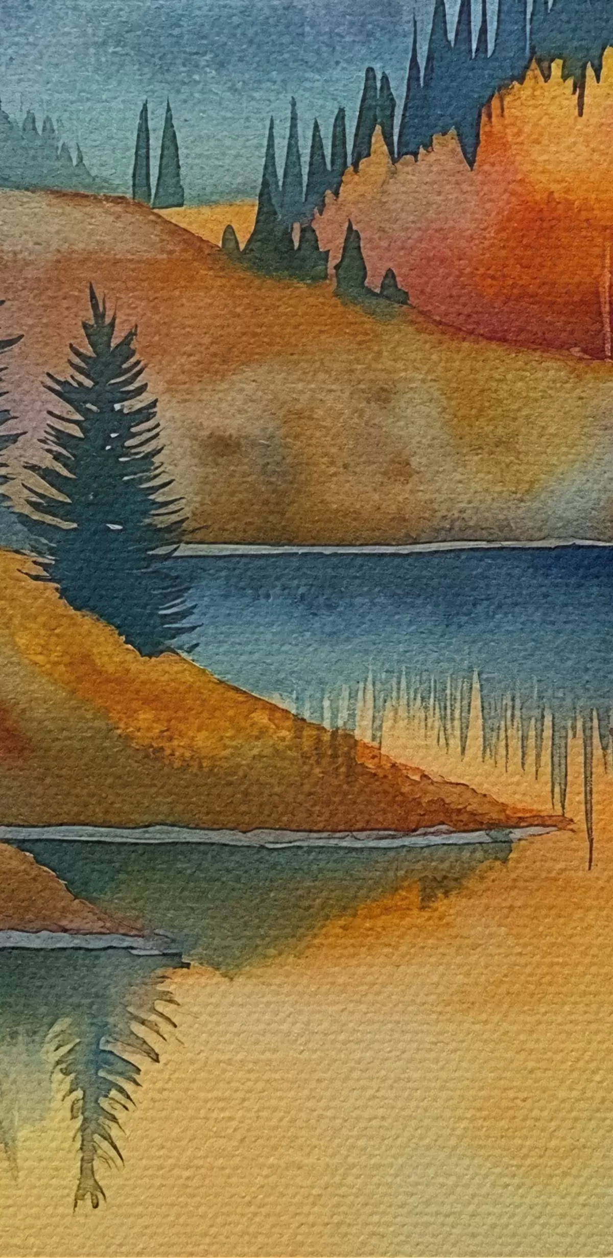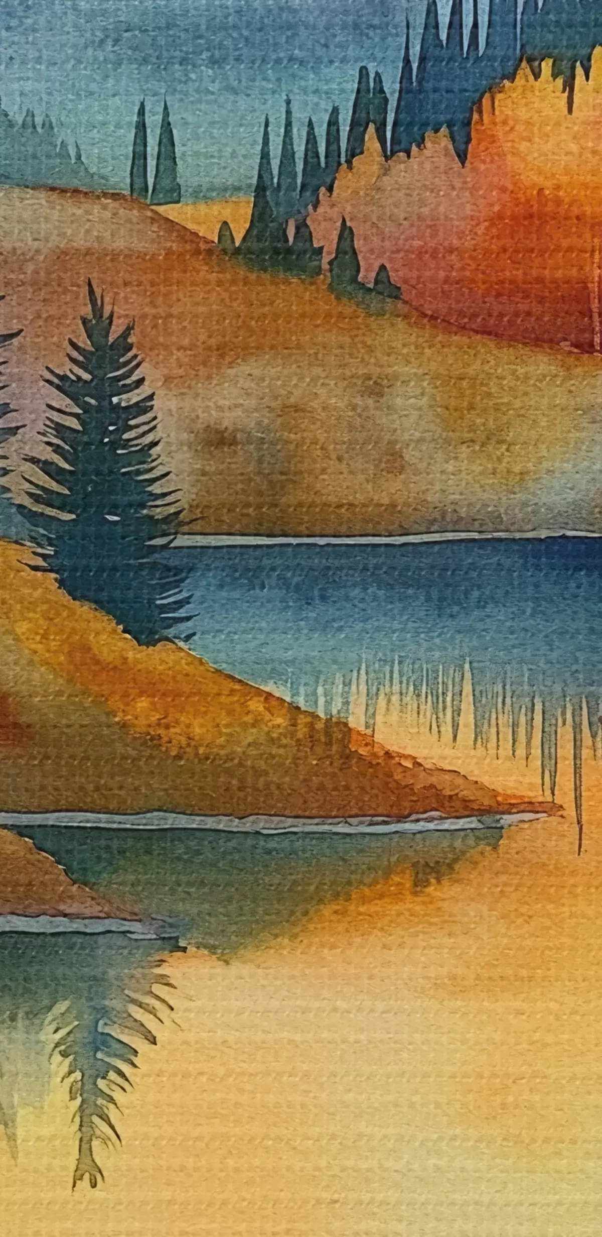 Кругла картина Осінній пейзаж з горами, що відбиваються в спокійному озері r46174