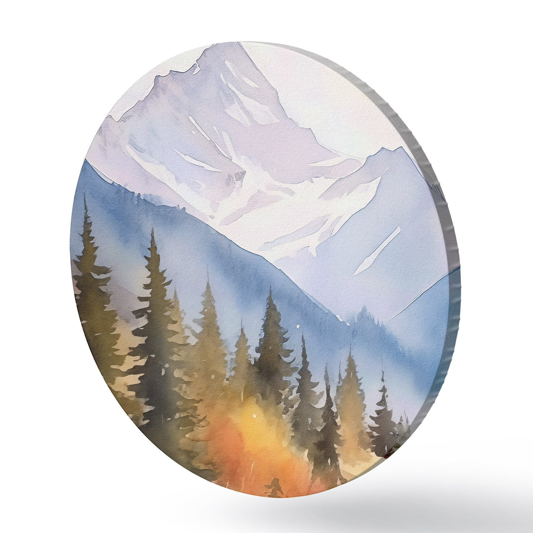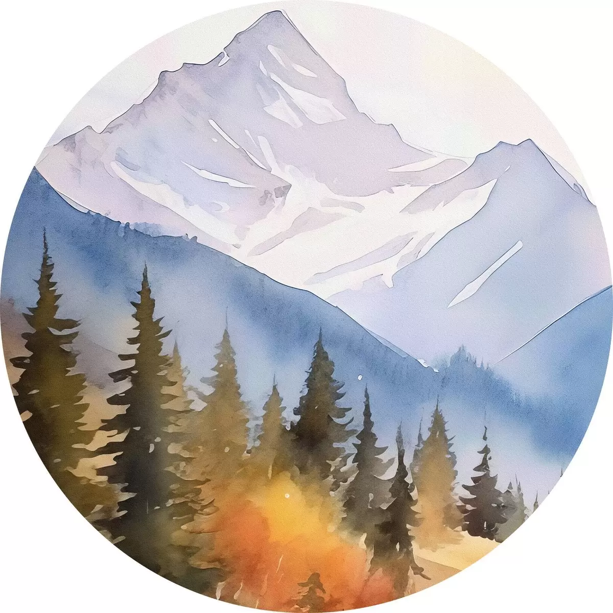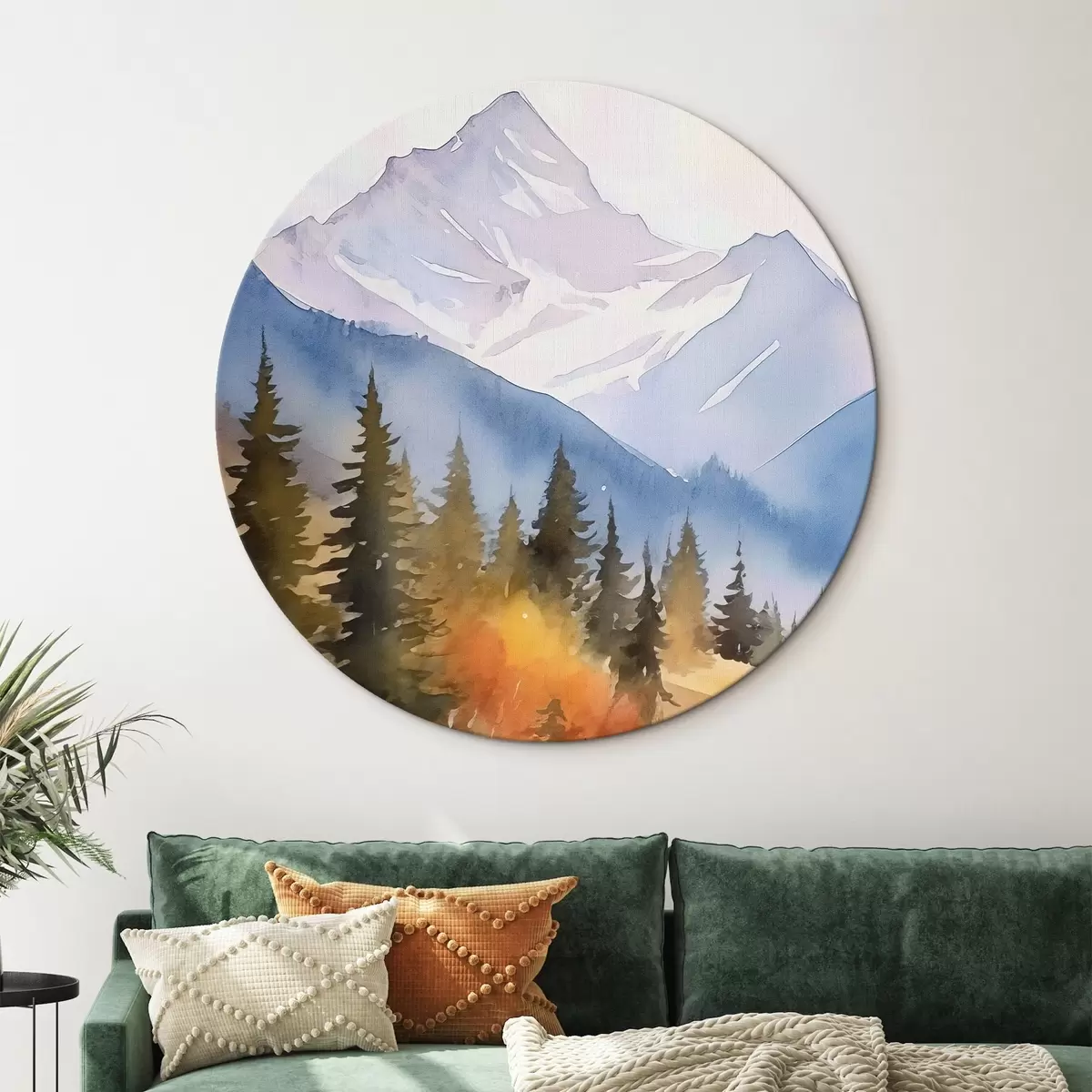 Кругла картина Осінній гірський пейзаж з річкою та яскравим лісом Nr r46187