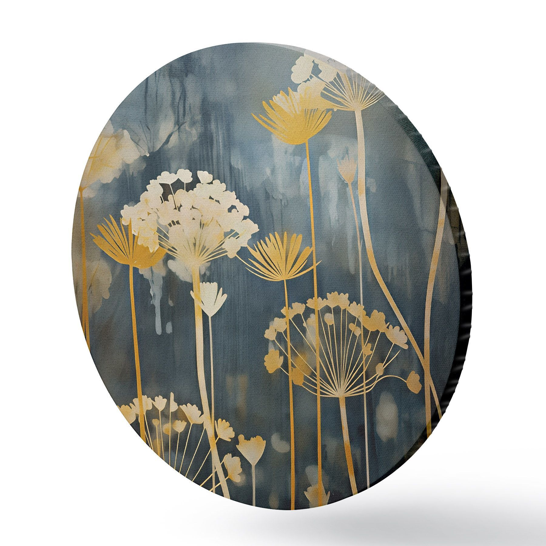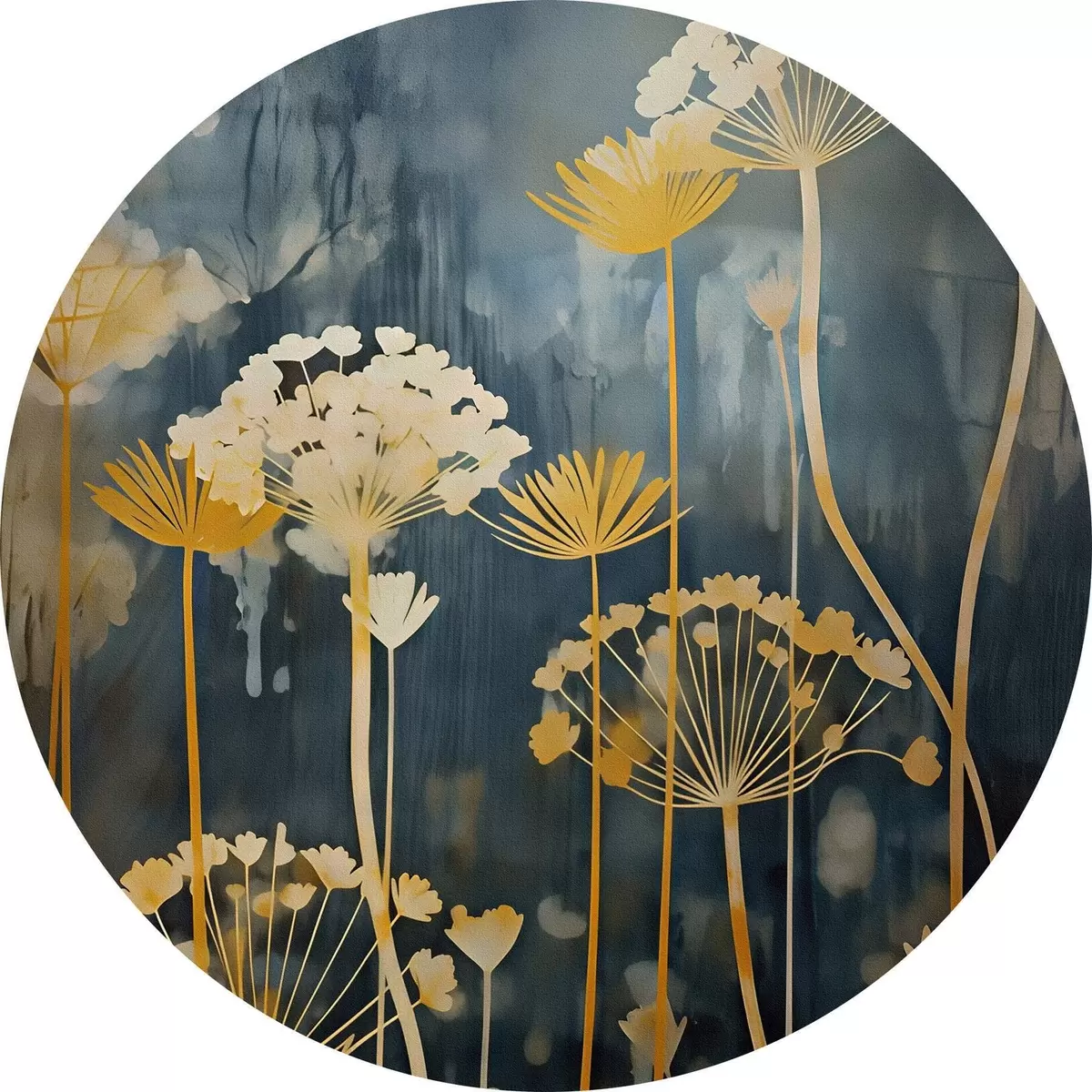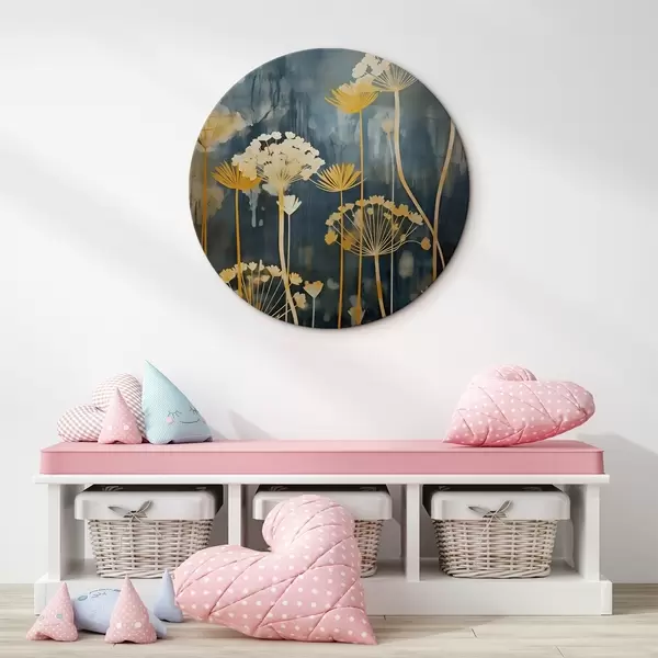 Кругла картина Стилізовані квіти з тонкими стеблами на темному тлі Nr r46188