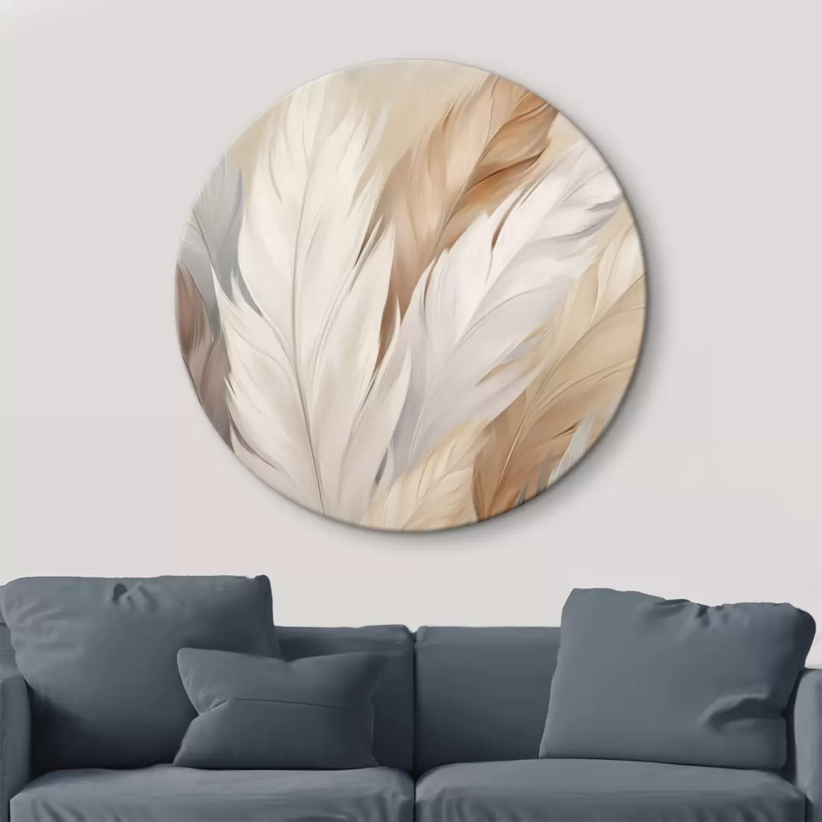Кругла картина М'які пір'я в бежевих і сірих тонах Nr r46190