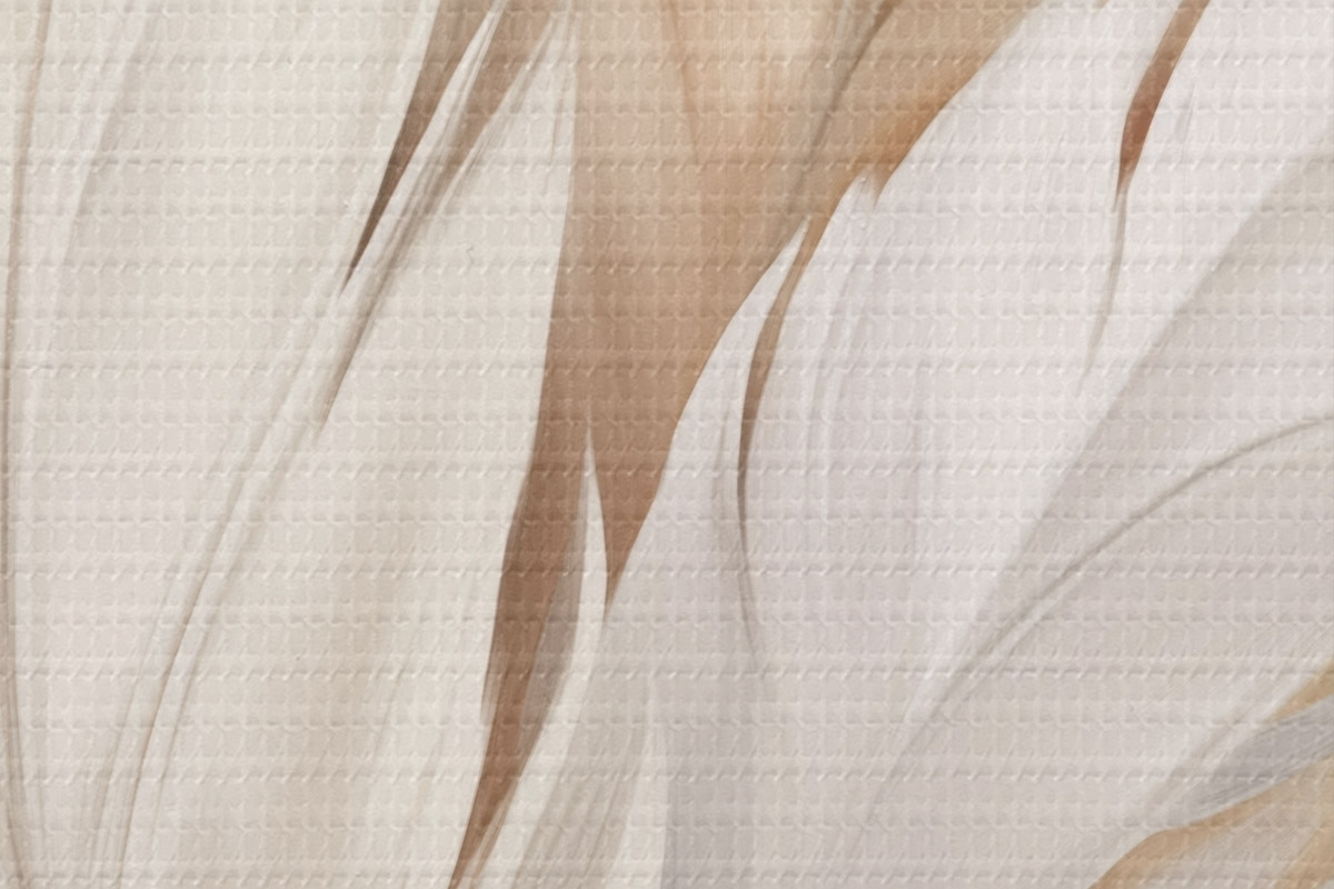 Кругла картина М'які пір'я в бежевих і сірих тонах r46190