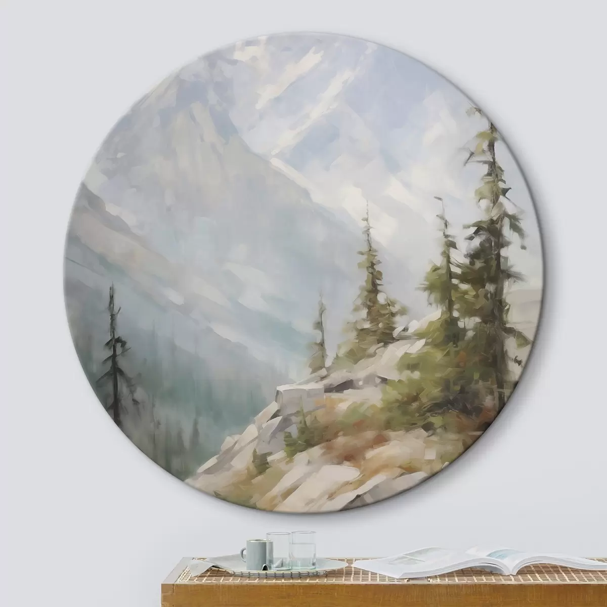 Кругла картина Ялини на тлі гір Nr r46202