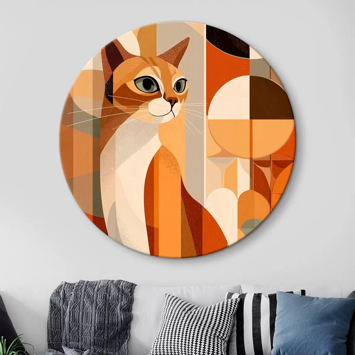 Кругла картина Геометричний кіт Nr r46208