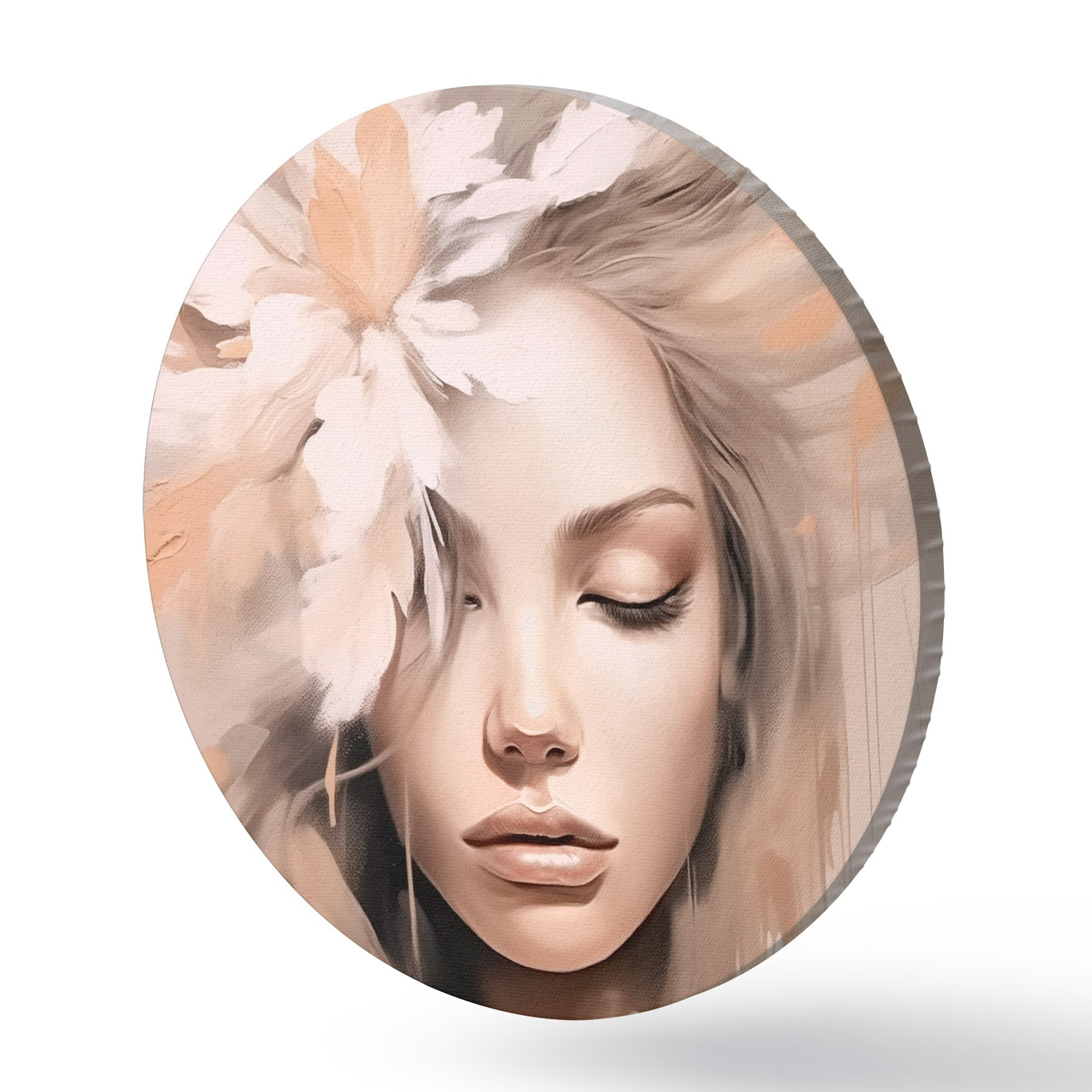 Кругла картина Жіночий портрет з квіткою Nr r46218