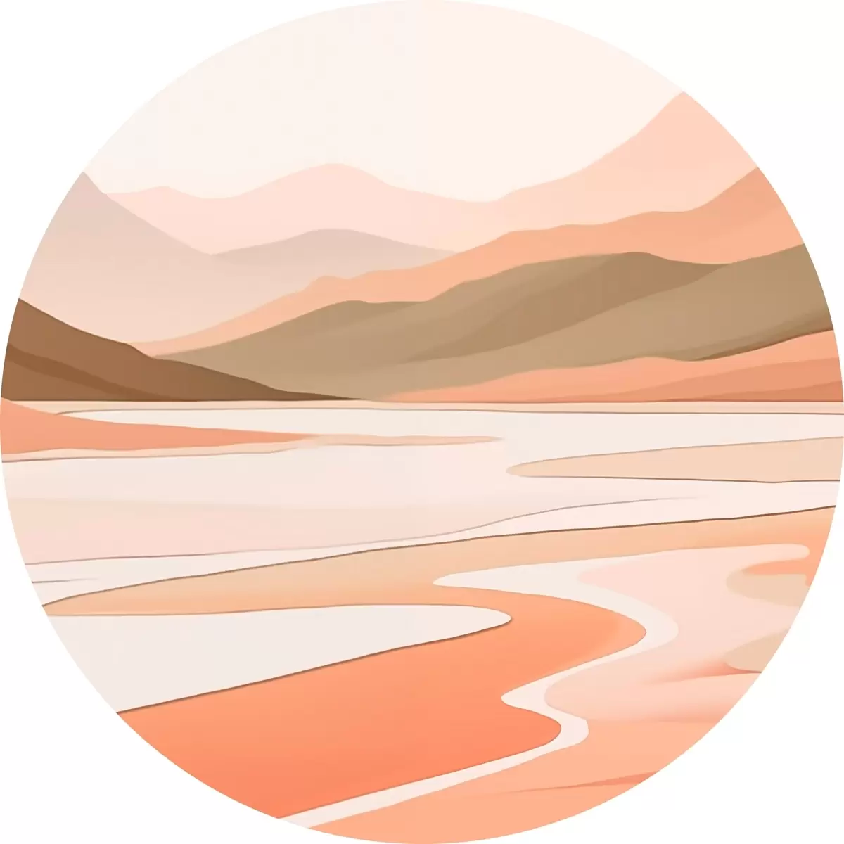 Кругла картина Абстрактний пейзаж з горами та річкою Nr r46249